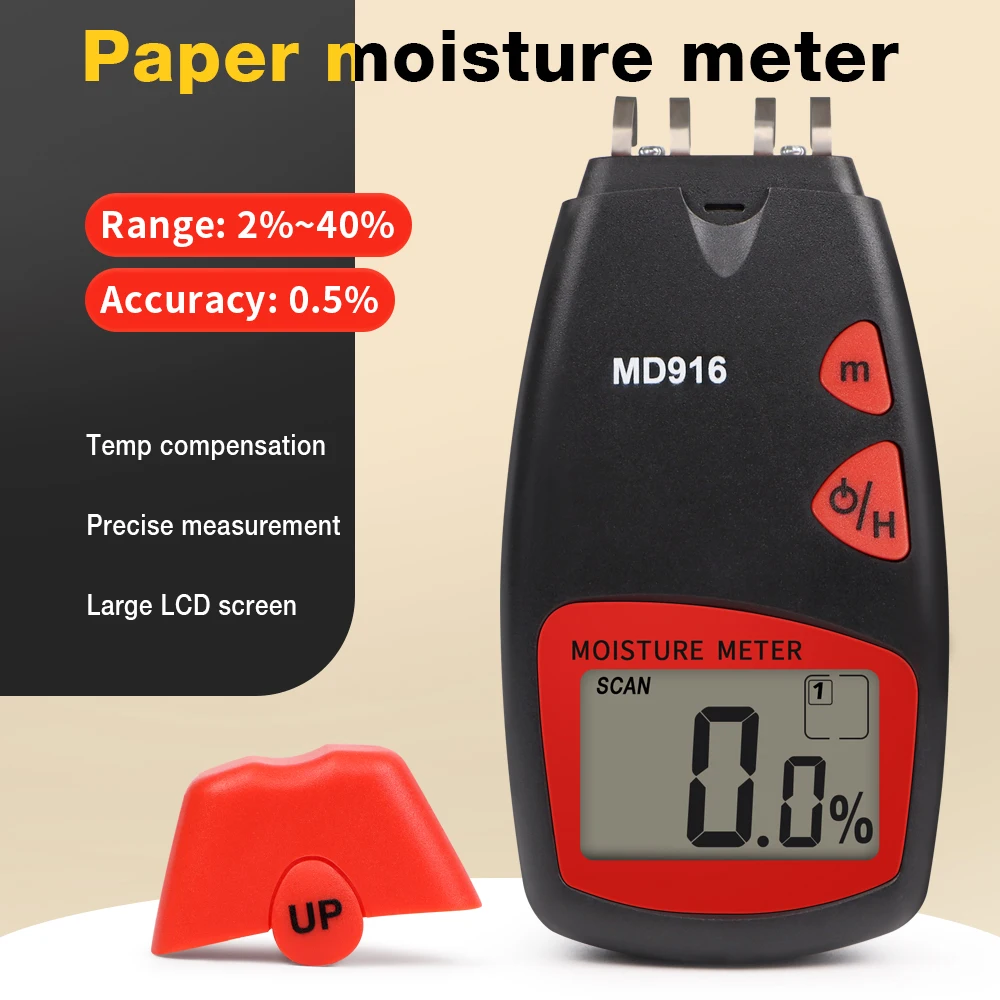 Medidor de humedad de papel MD916, higiéter Digital LCD, Detector de humedad de papel de madera, probador de contenido de humedad del 2-40% para la industria del papel