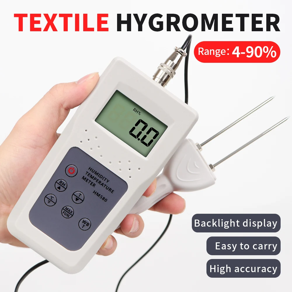 KMS680T medidor de humedad textil pantalla LCD Detector de humedad precisión analizador de contenido de agua textil bobina de algodón higrómetro de seda