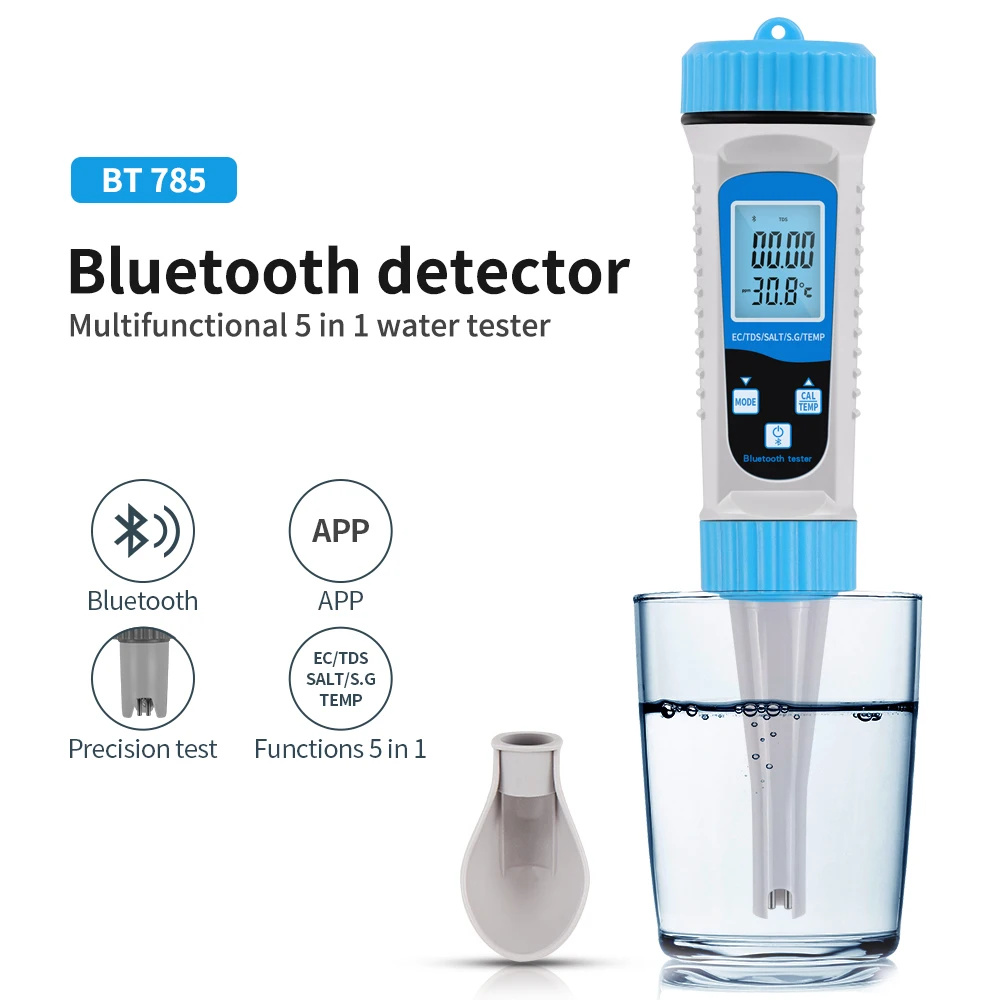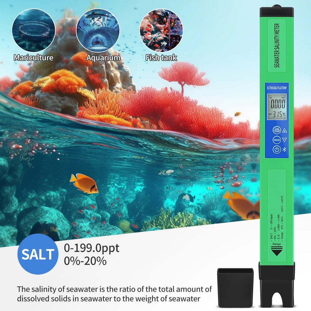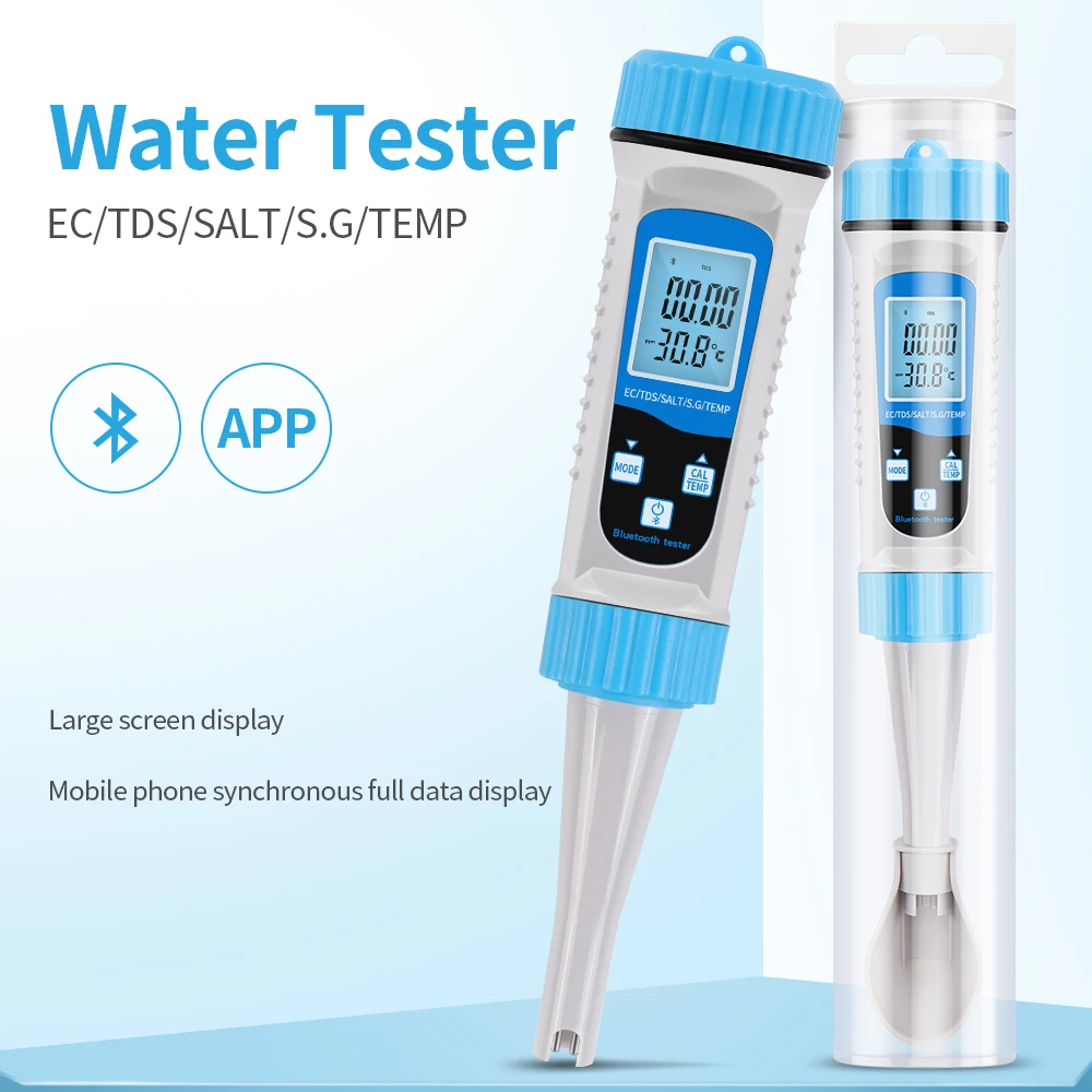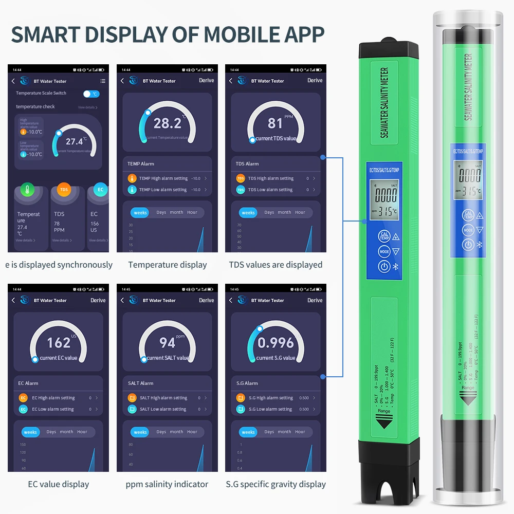 Smart 5 en 1 Salinity EC TDS Temp medidor de pH Bluetooth calidad del agua PH Tester APP Control para acuario piscina pecera