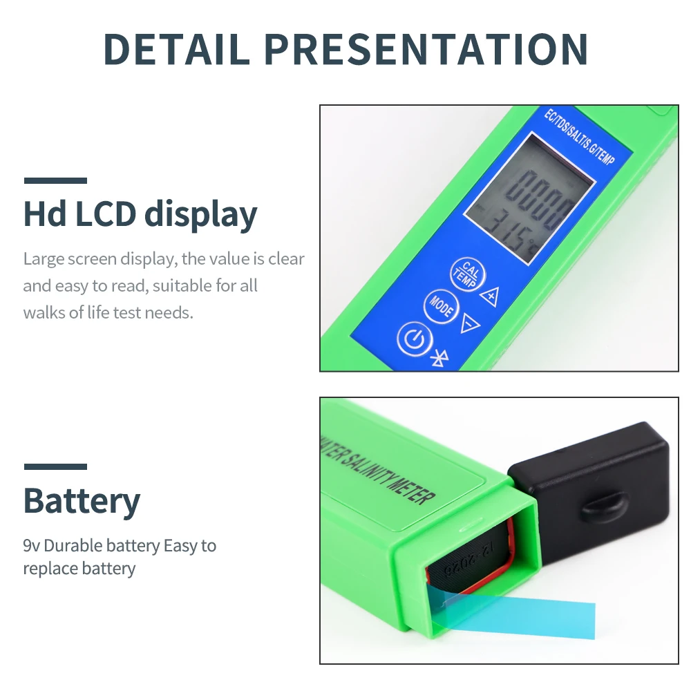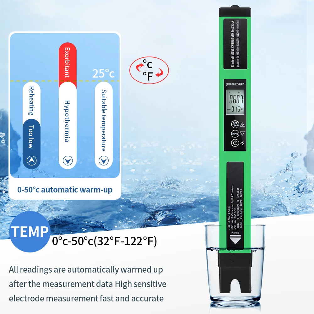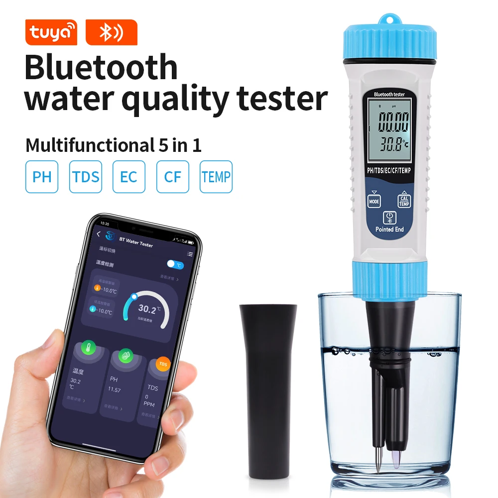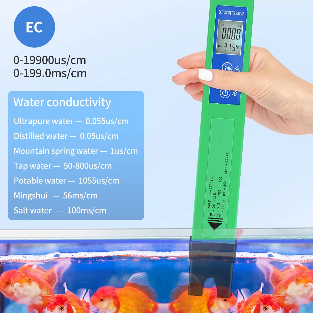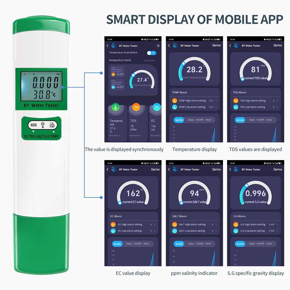 Smart 5 en 1 Salinity EC TDS Temp medidor de pH Bluetooth calidad del agua PH Tester APP Control para acuario piscina pecera
