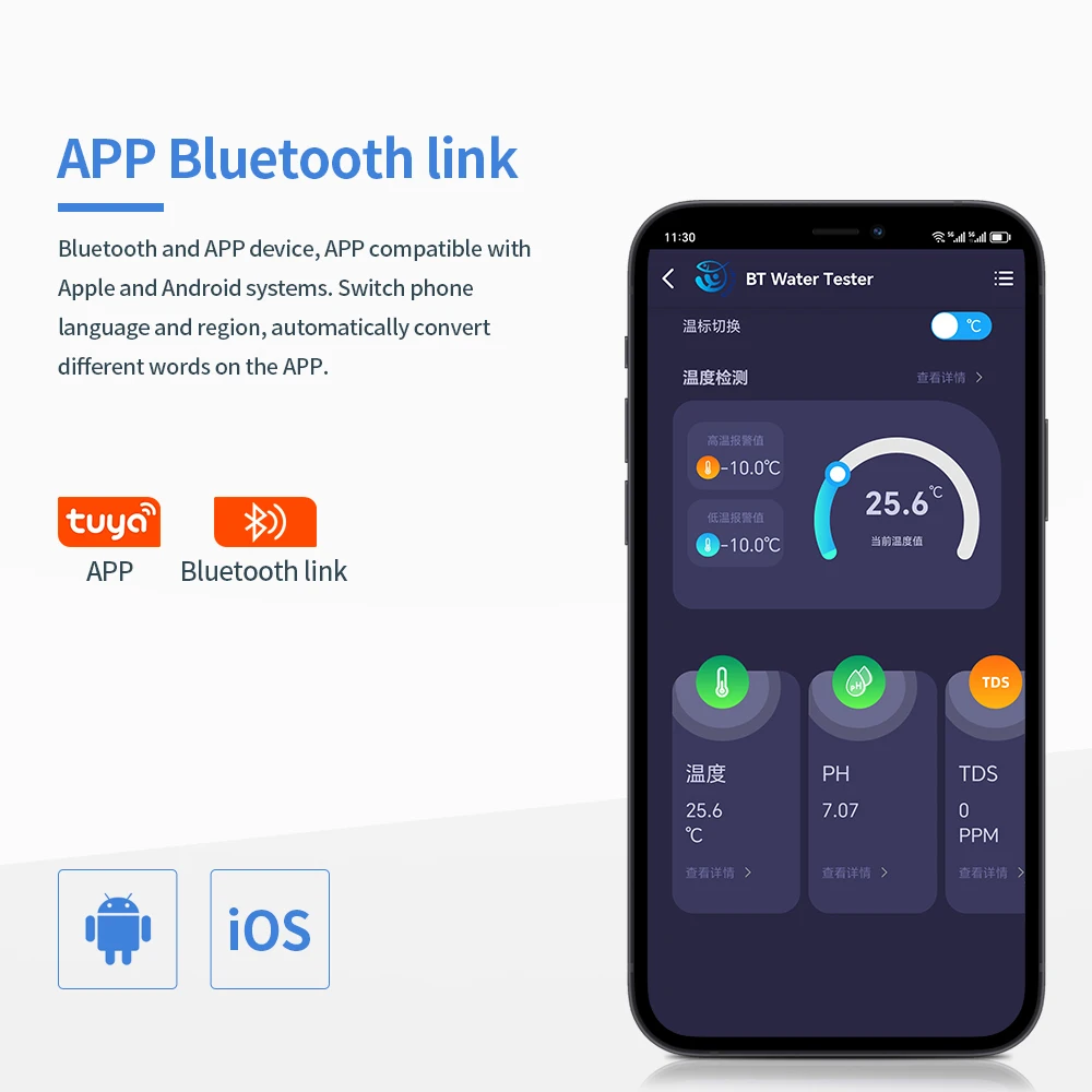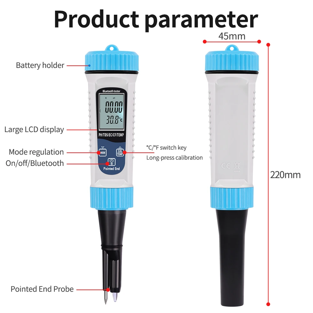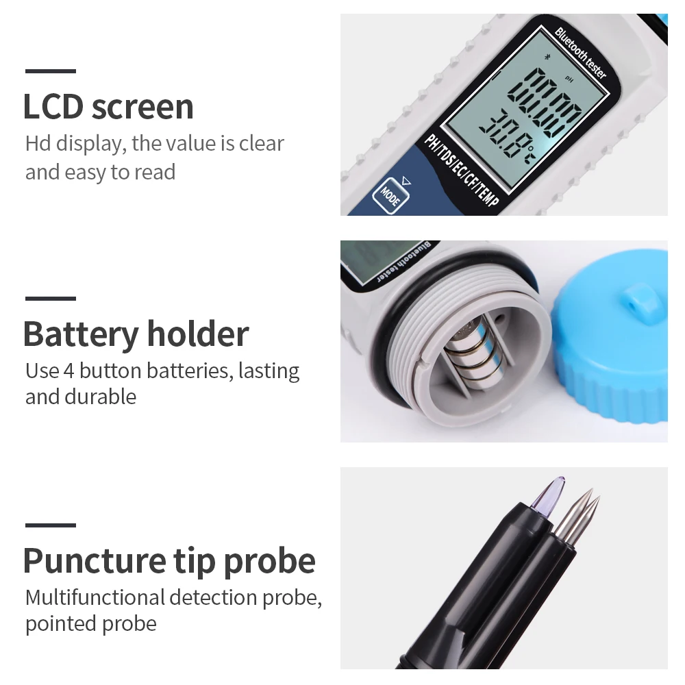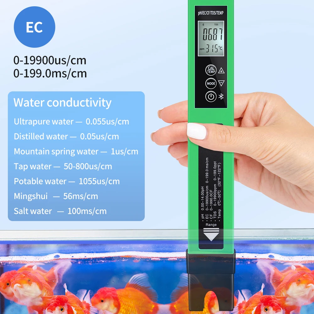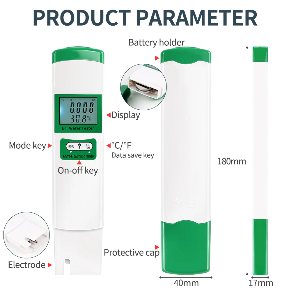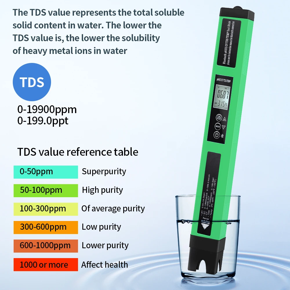 Lista de embalaje: 1 * Bluetooth PH/TDS/EC/CF/medidor de Calidad de Agua de temperatura