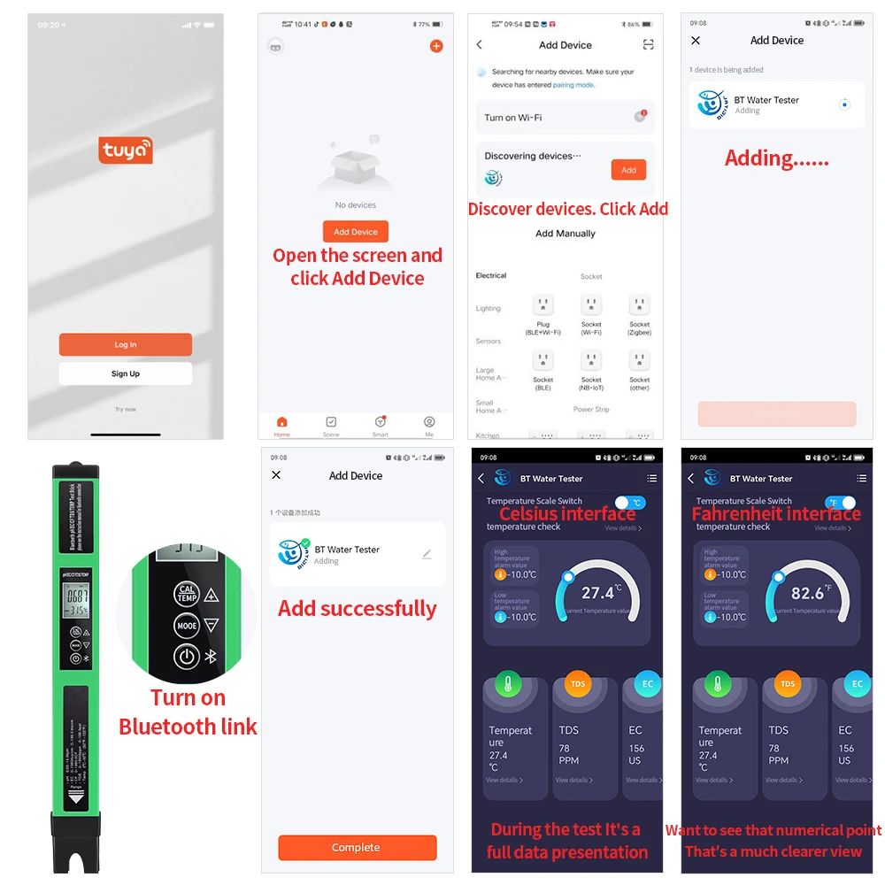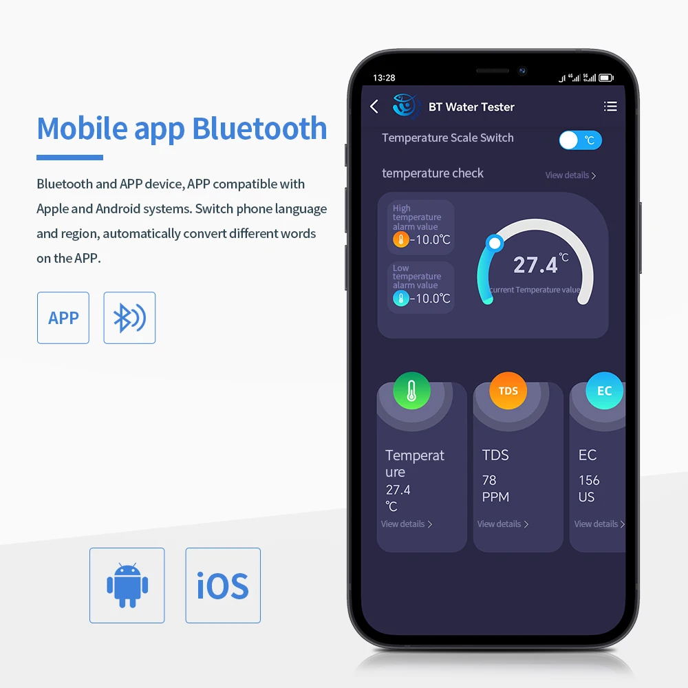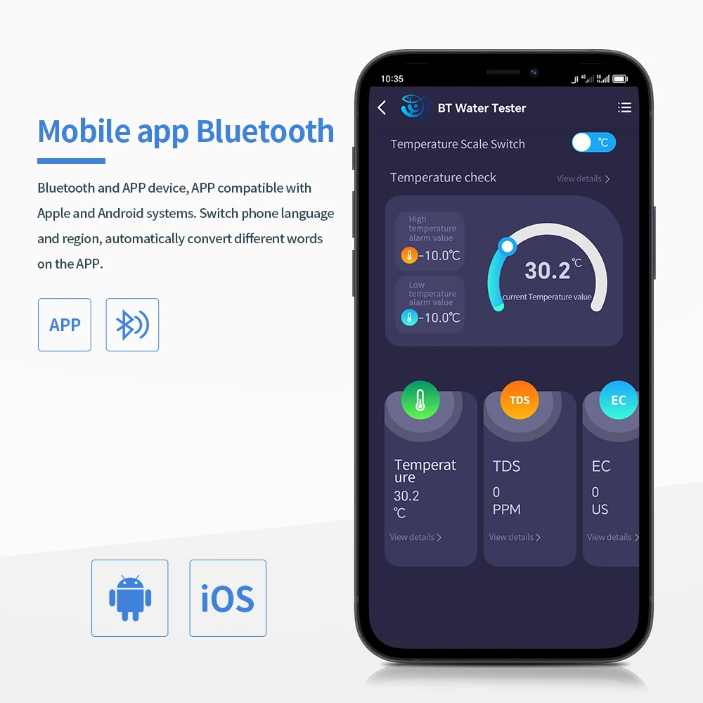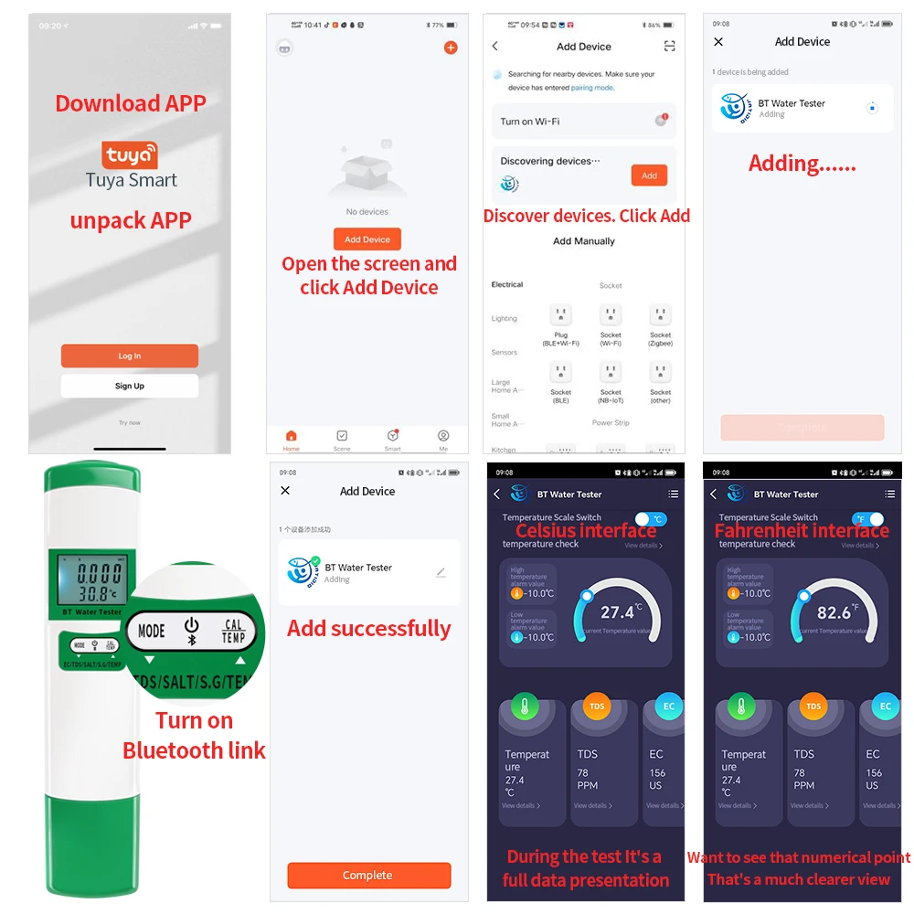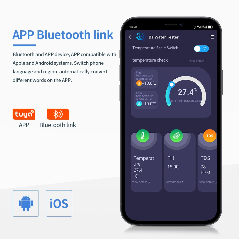 Lista de embalaje: 1 * Bluetooth PH/TDS/EC/CF/medidor de Calidad de Agua de temperatura