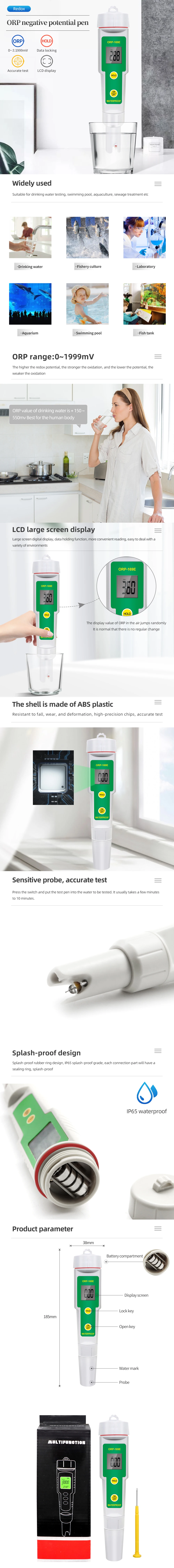 Medidor de ORP profesional a prueba de agua, medidor de ORP de alta calidad, probador de calidad del agua, herramienta de prueba, probador de ORP