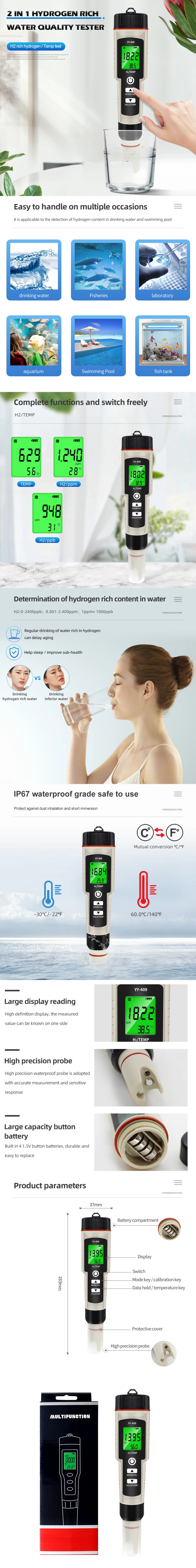 Este producto es un probador de calidad del agua multifuncional de alta precisión recientemente desarrollado, que tiene las funciones de medir el ORP, la concentración de iones de hidrógeno y la temperatura del agua. Se actualizan los datos de medición de compensación automática de temperatura (0-60 °C). Preciso, fácil de operar, fácil de transportar, beber mucha agua rica en iones de hidrógeno es bueno para la salud.