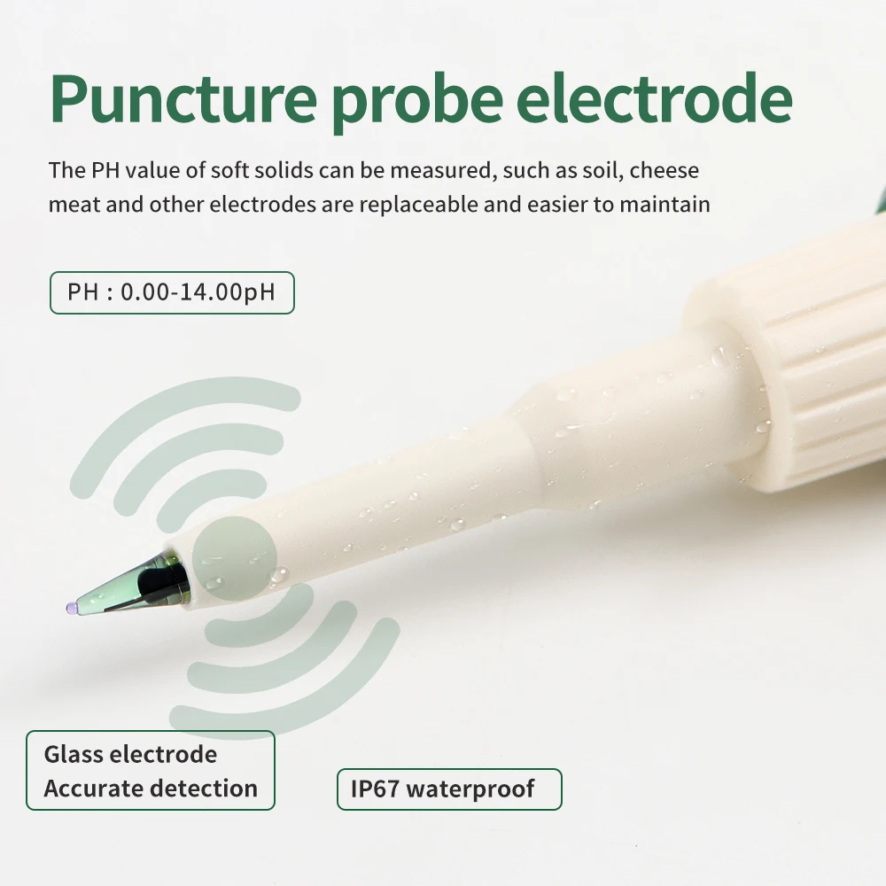 El producto se utiliza principalmente para medir electrodos dieléctricos sólidos o semisólidos que contengan agua.Al insertar el electrodo, preste atención al uso de fuerza uniforme para evitar daños al electrodo.Si el medio probado es relativamente sólido (como carne y fruta), primero se debe perforar un pequeño agujero y luego se debe insertar el electrodo.Al probar alimentos (como sushi, queso, carne, fruta, etc.), las muestras deben usarse solo para pruebas y la muestra de prueba no debe ser comestible. Al probar el suelo, tenga cuidado de no insertarlo directamente en un suelo demasiado duro, ya que podría dañar el electrodo.