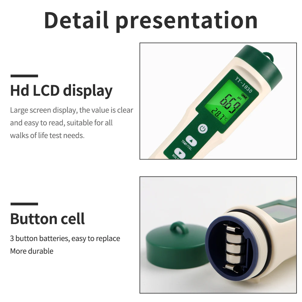 Medidor de PH para alimentos y masa, probador de acidez con retroiluminación LCD, medidor de PH del suelo, Detector de temperatura de PH portátil para cosméticos, alimentos, queso, carne, frutas