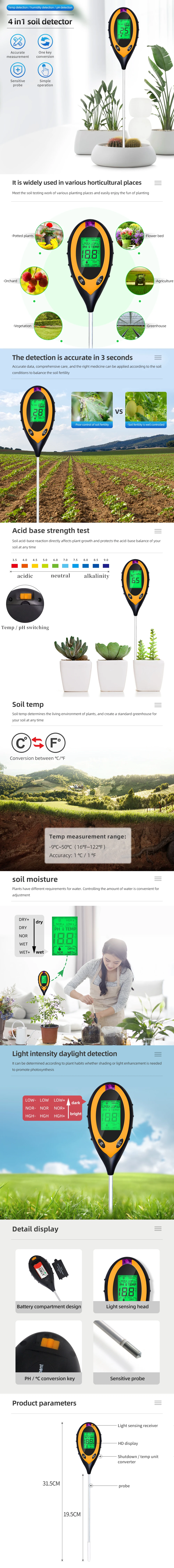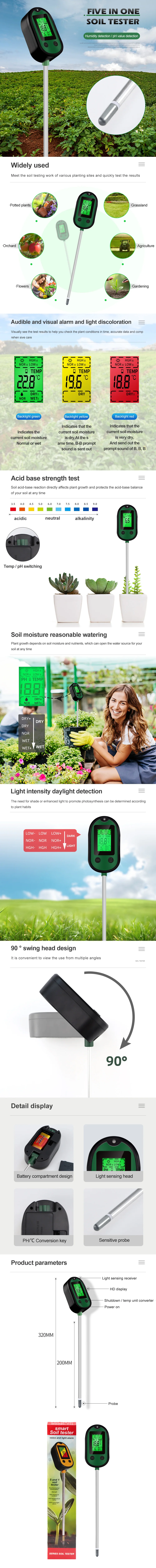 Medidor de PH del suelo 4/5 en 1, higrómetro de luz solar, LCD Digital, planta de jardín, flores, Monitor de temperatura, Sensor, herramienta de prueba de humedad ambiental