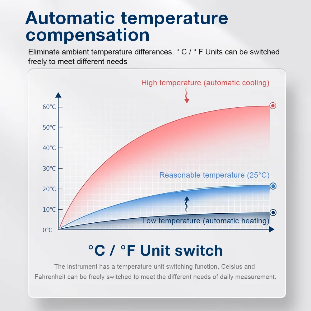 2.Admite funciones de retroiluminación y reinicio de fábrica, compensación automática de temperatura y modo de medición de equilibrio;