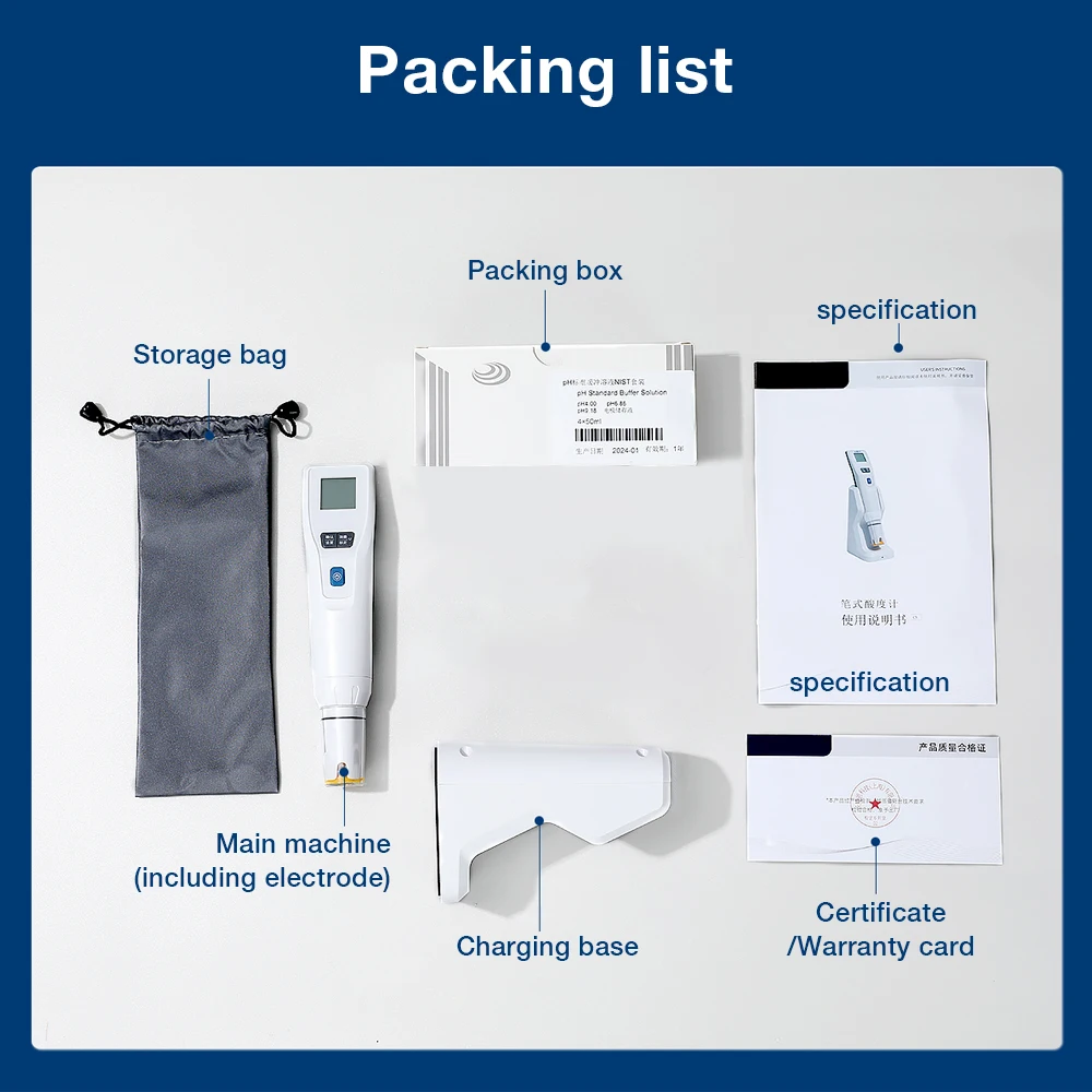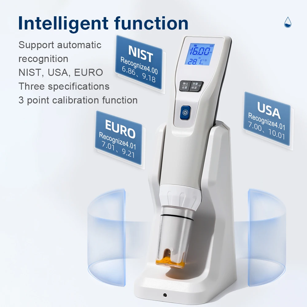 Medidor de PH Digital, probador de acidez tipo bolígrafo, precisión de 0,01 pH, probador de calidad del agua 3 en 1, Detector de PH de laboratorio con Base de carga