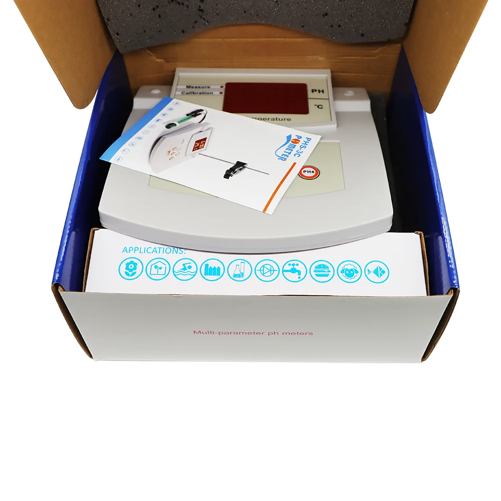 El medidor de pH es un medidor de pH/temperatura portátil basado en microprocesador. El práctico teclado para la selección de las diversas funciones. La posibilidad de corregir automáticamente los errores en la medición debido a la temperatura y la extrema simplicidad de la regulación permiten una ejecución rápida y fiable de la calibración y la medición. La pantalla en el panel frontal revela las lecturas de pH de temperatura tomadas por el instrumento. El instrumento se suministra con un electrón de pH combinado y una sonda para la medición y compensación de la temperatura.