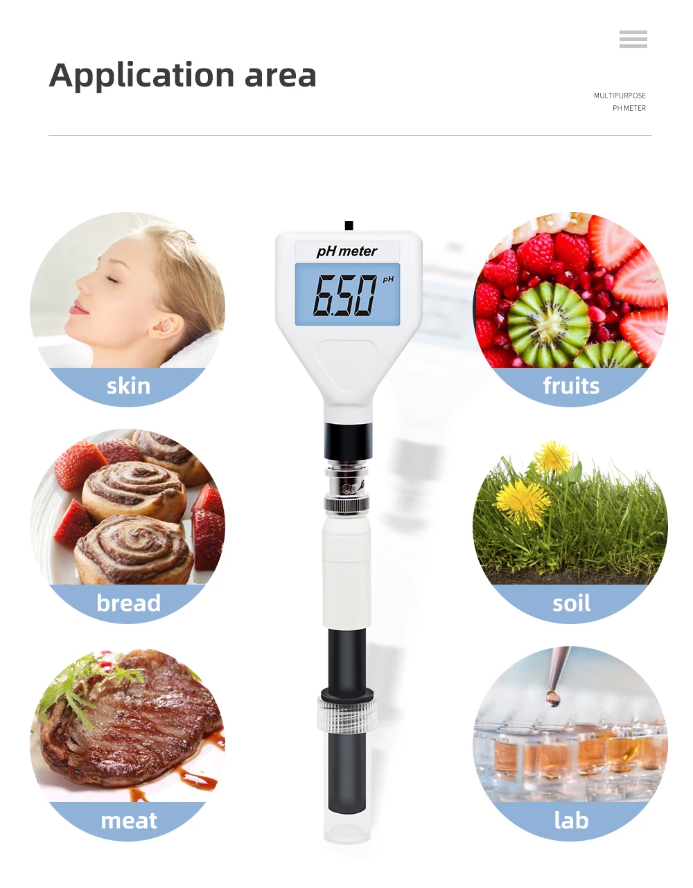 Medidor de PH para la piel, probador de acidímetro, sonda reemplazable, retroiluminación LCD para frutas, carne, crema, loción, cosméticos