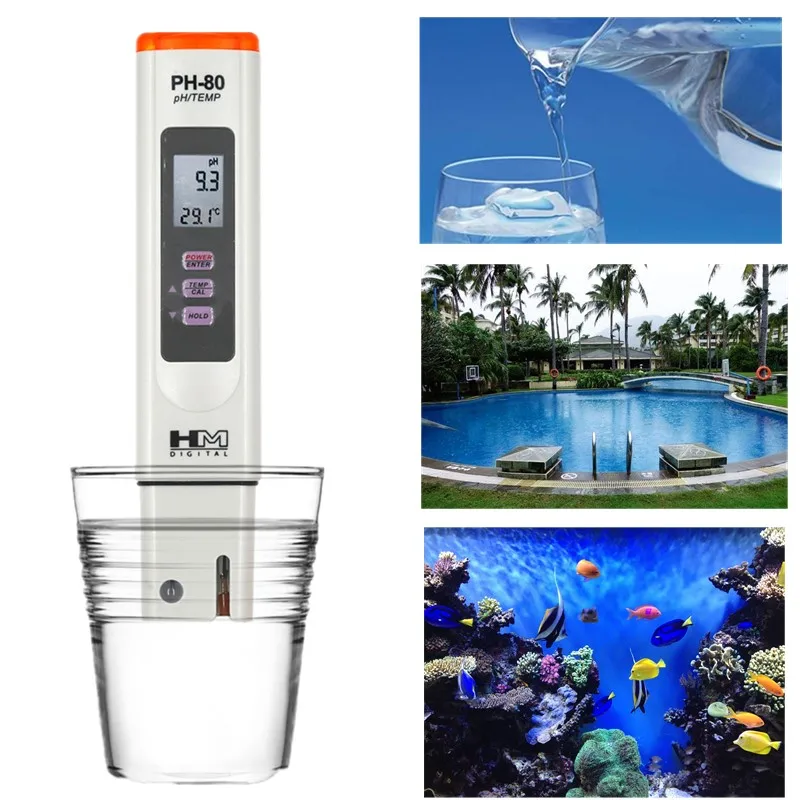 HM Medidor de PH 2 en 1 ATC Probador de calidad del agua digital Detector de temperatura de PH Pluma de prueba de agua para acuario de piscina
