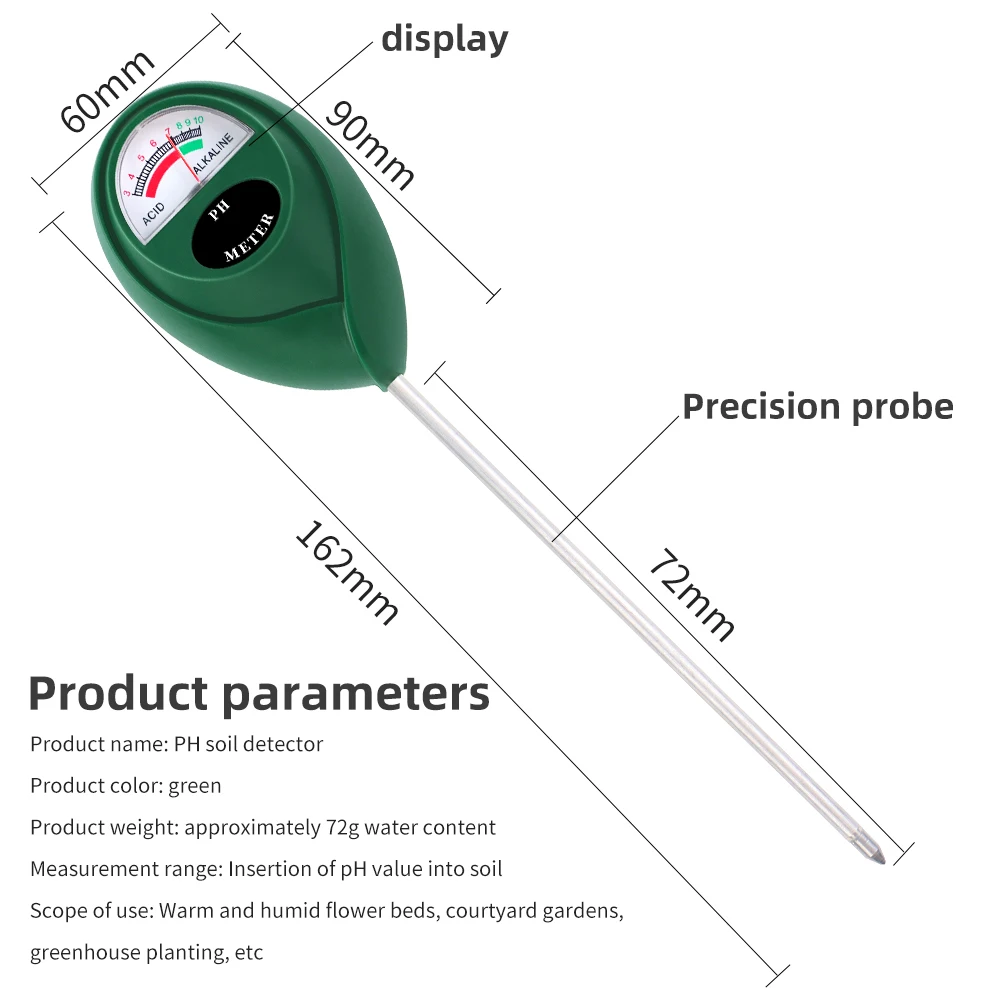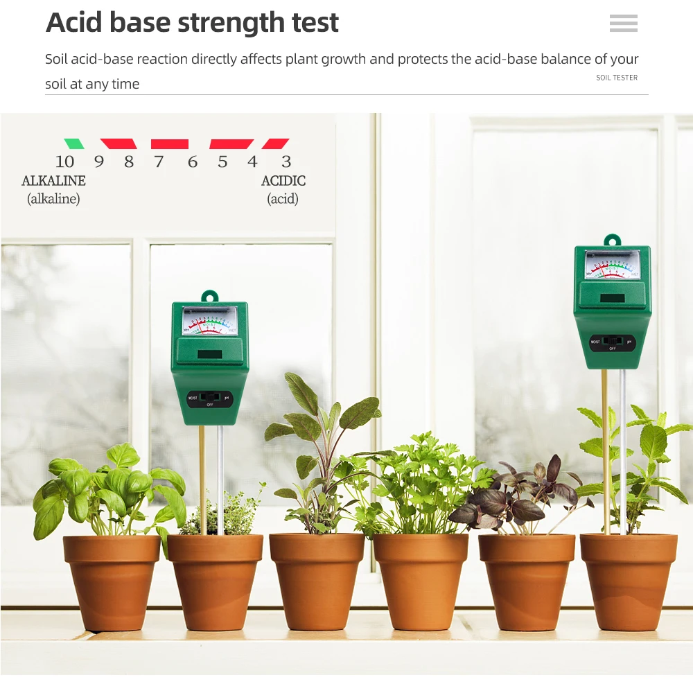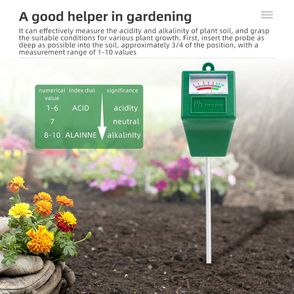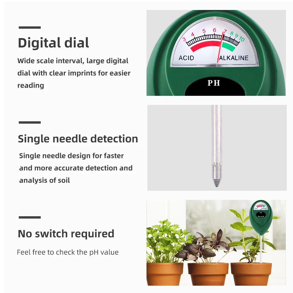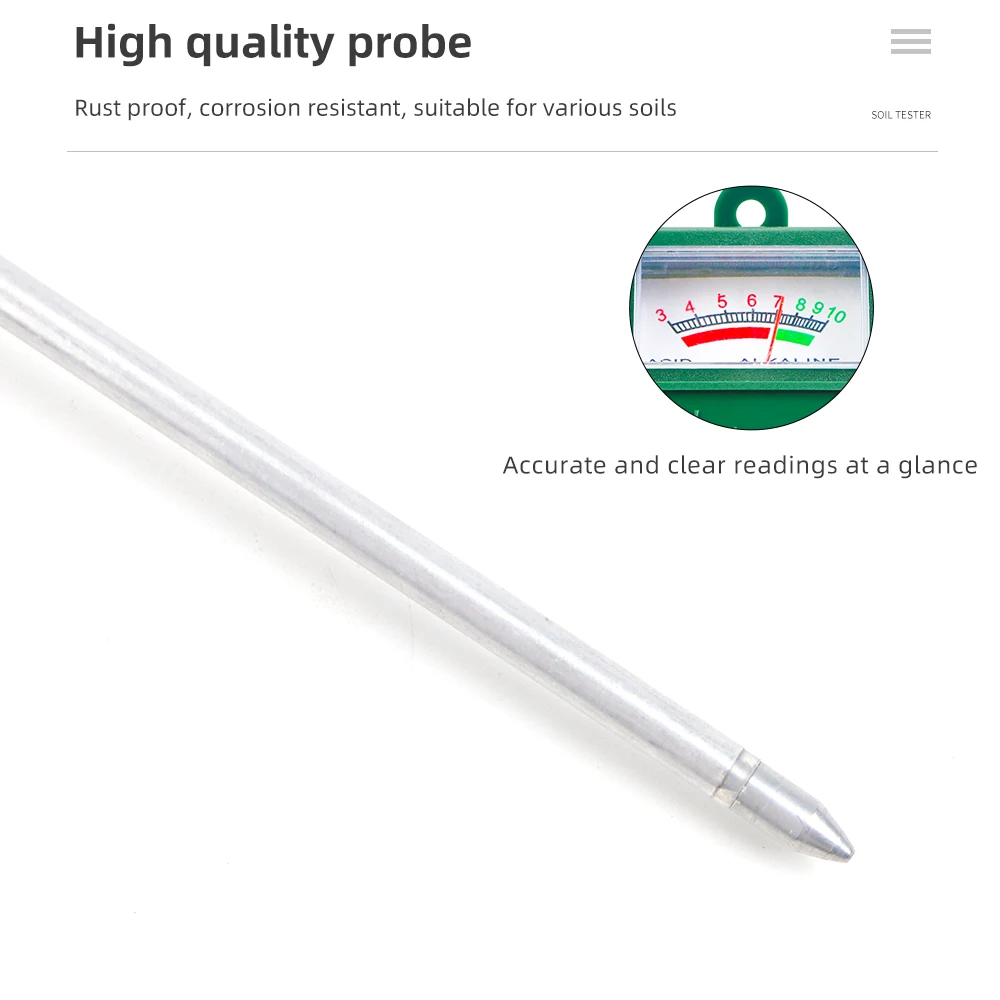 Medidor de PH del suelo Indicador de ácido alcalino Herramienta de medición de jardinería doméstica 3-10 Probador de prueba de PH Instrumento de prueba Sensor de suelo