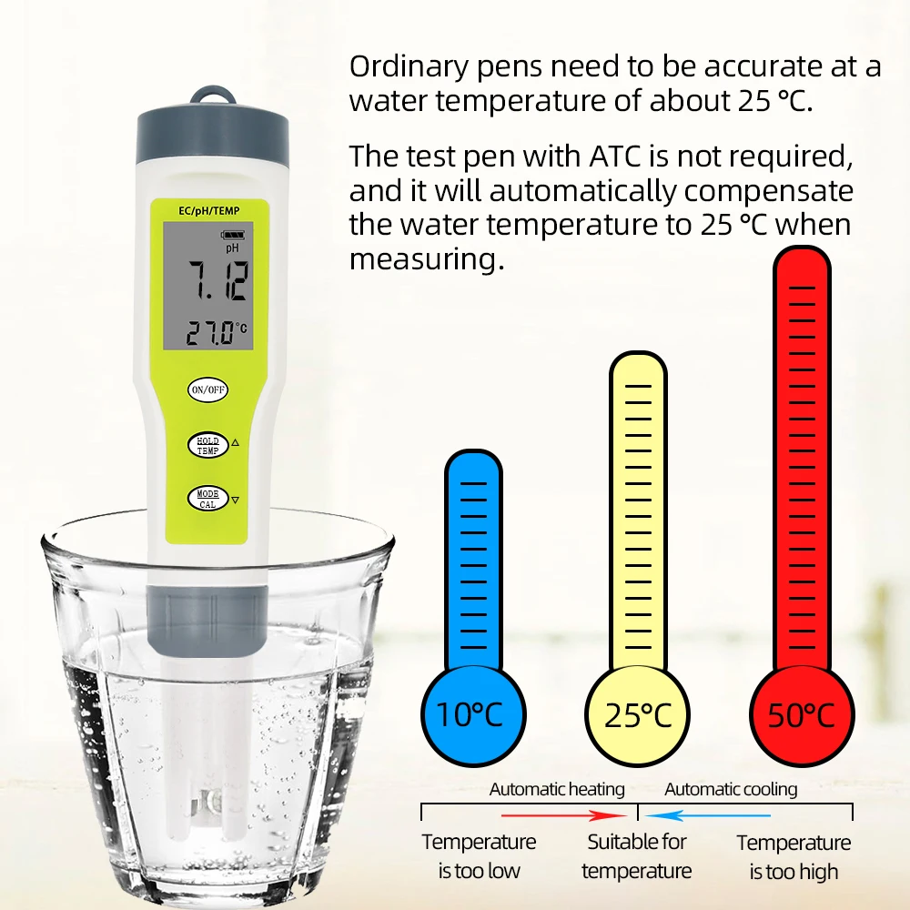 TDS/PH/EC/Medidor de temperatura 4 en 1