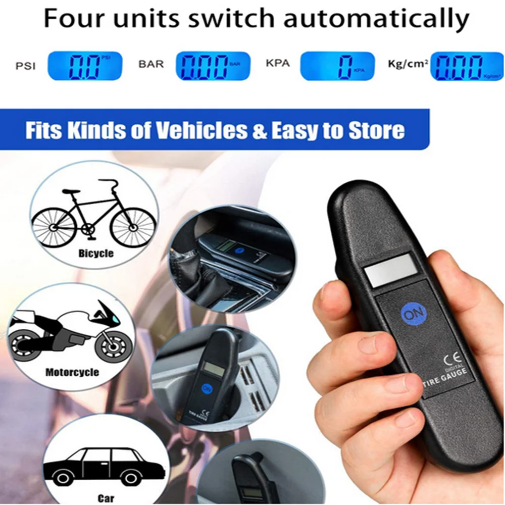 Medidor de presión de neumáticos Digital LCD 0-100PSI Medidor de neumáticos de coche Manómetro de mano Probador de barredores Detector PSI/KPA/BAR/KG/CM2 para coche