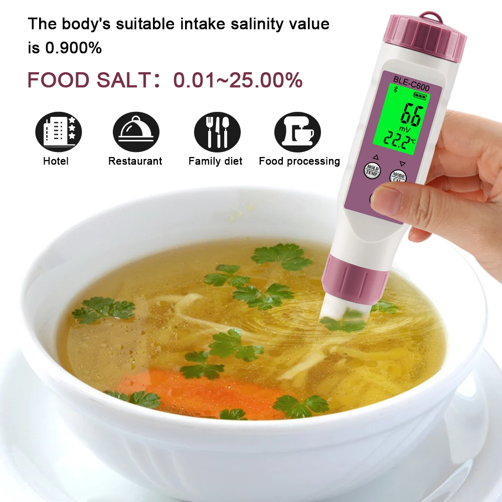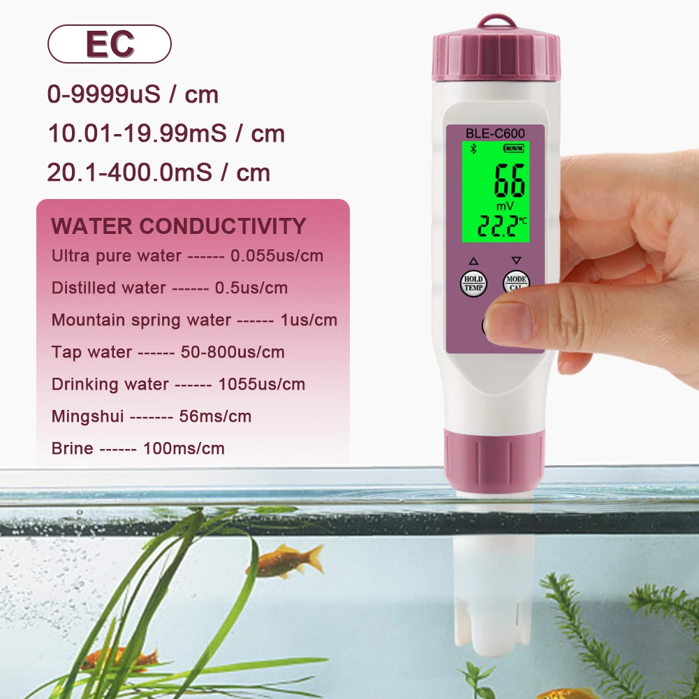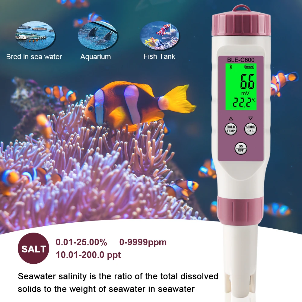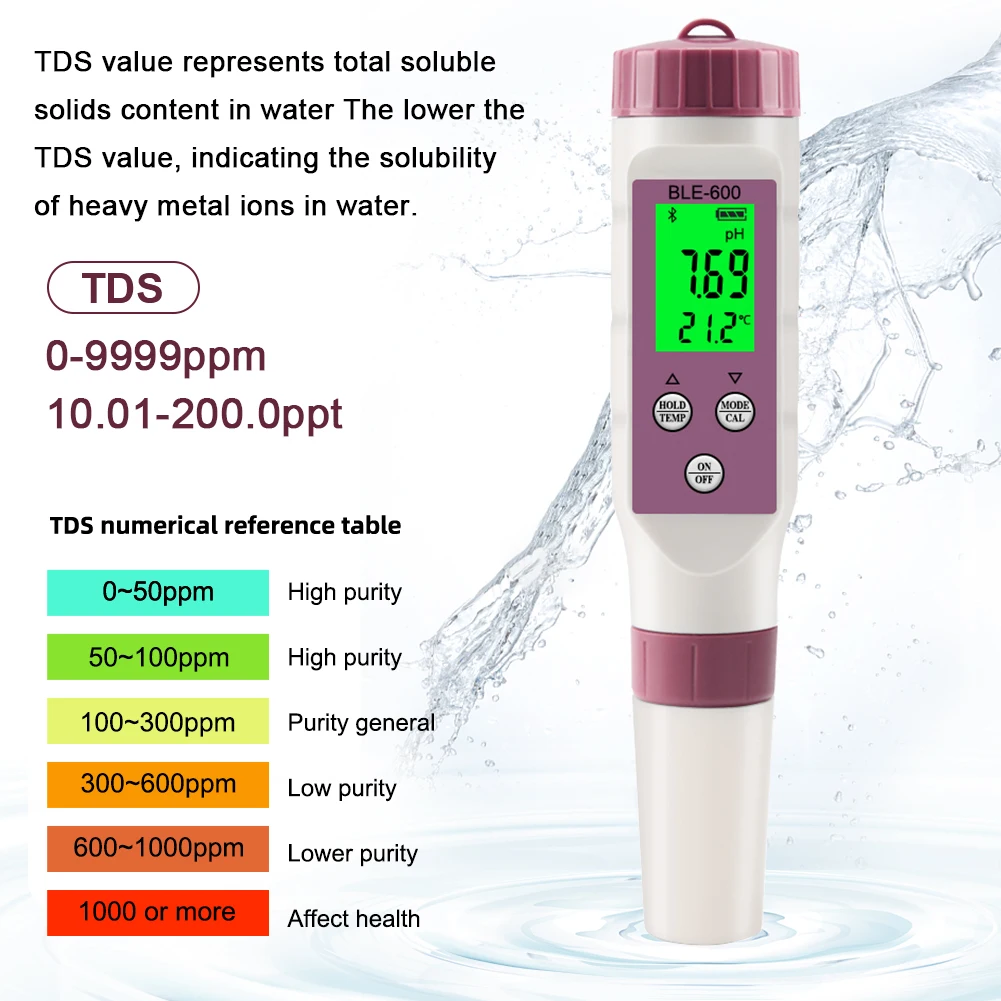 【Medidor de pH con Bluetooth】Medición profesional de pH, TDS(ppm), CE (conductividad), ORP, S.G, salinidad (PPT) y temperatura. Adecuado para agua potable doméstica, hidroponía, laboratorio, acuario. Se puede utilizar como un probador clásico incluso si no está conectado a un teléfono inteligente. Se puede utilizar como un probador clásico incluso si no está conectado a un teléfono inteligente.