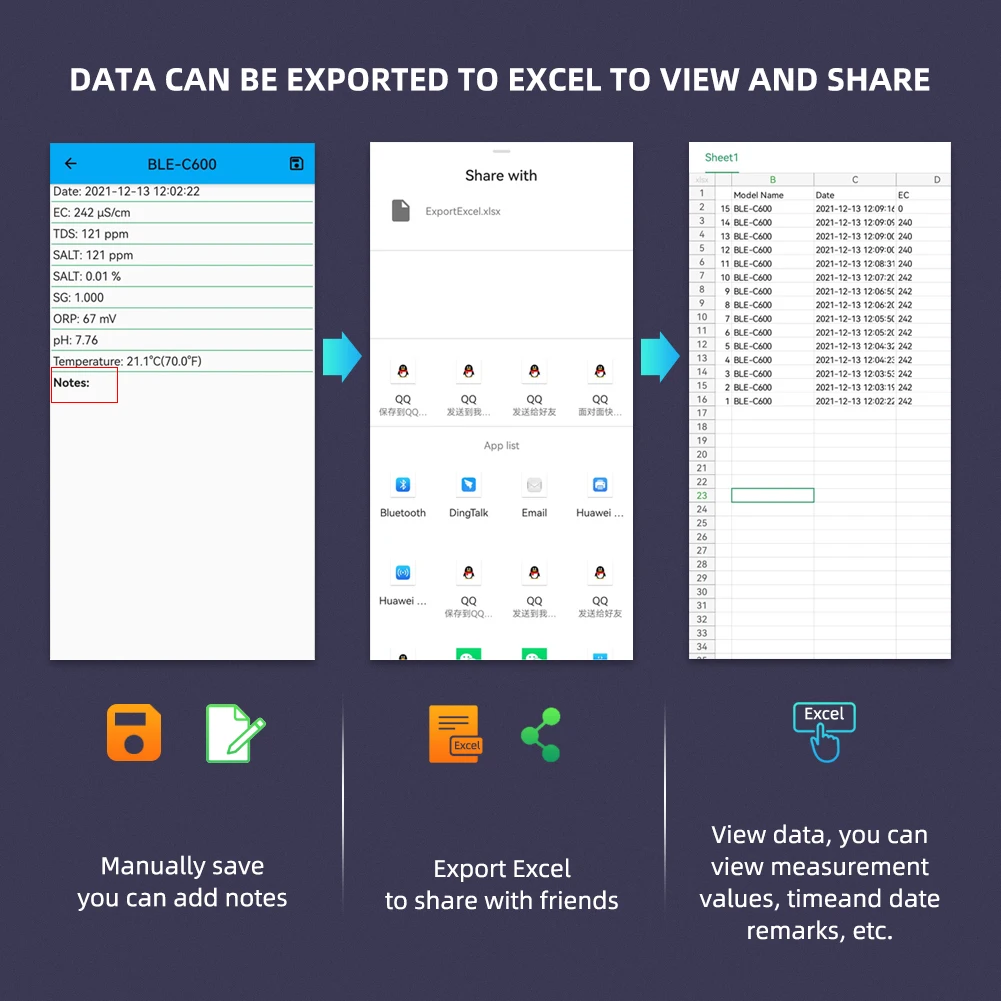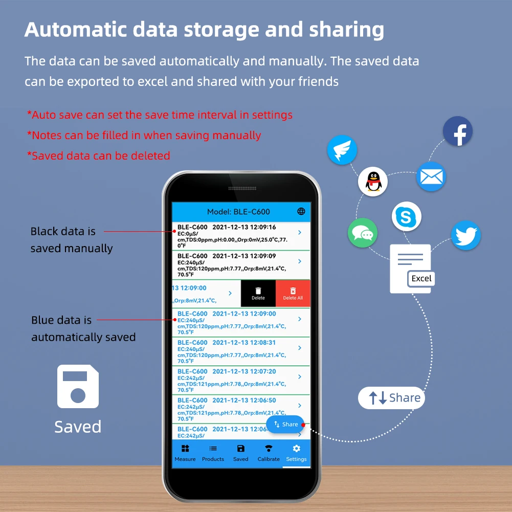 【Sistema de gestión de datos basado en la nube】La transmisión precisa de datos Bluetooth en tiempo real y los valores de medición claros le facilitan guardar, administrar y compartir datos de prueba sin preocuparse por la pérdida de datos.