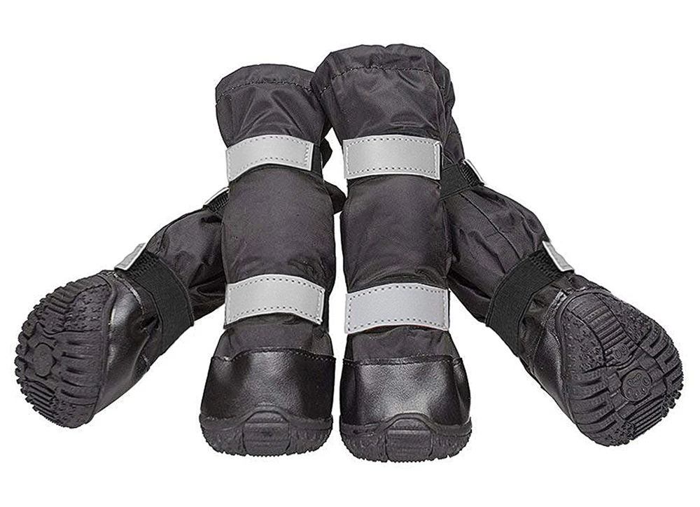 1.Material impermeable y forro interior cálido.Protegerá las patas de la nieve, la lluvia, el barro, la sal, etc.
