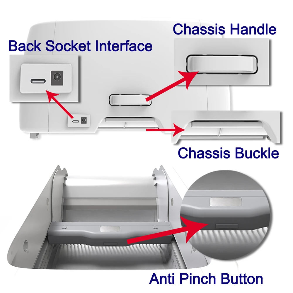 Uso del producto:Se utiliza para gatos de compañía en baños domésticos para gatos, defecación automática inteligente, compatible con conexión WIFI y control remoto a través de la aplicación