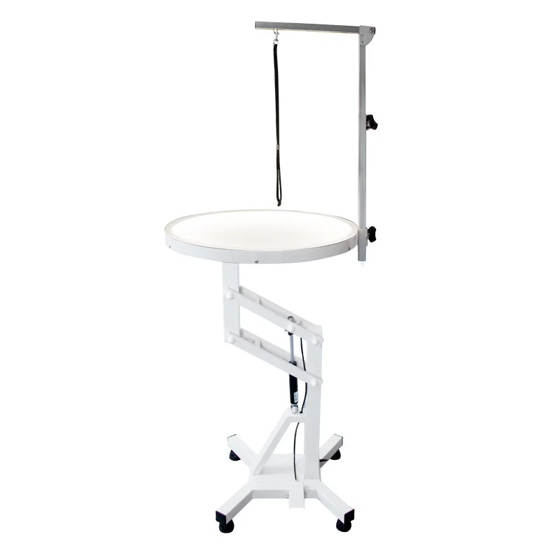 Mesa de aseo para mascotas luminosa LED, mesa de belleza giratoria con elevación de presión de aire para gatos y osito