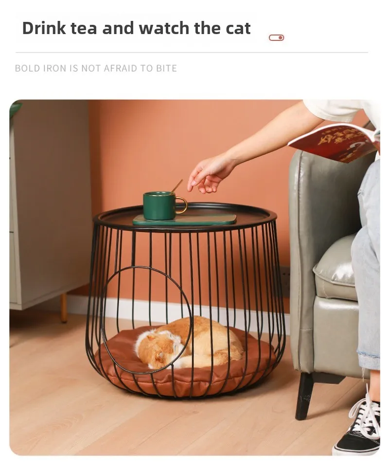 Mesa de centro nido para gatos, taburete de verano para mascotas, mesita de noche para casa de perros para dormir en interiores para las cuatro estaciones