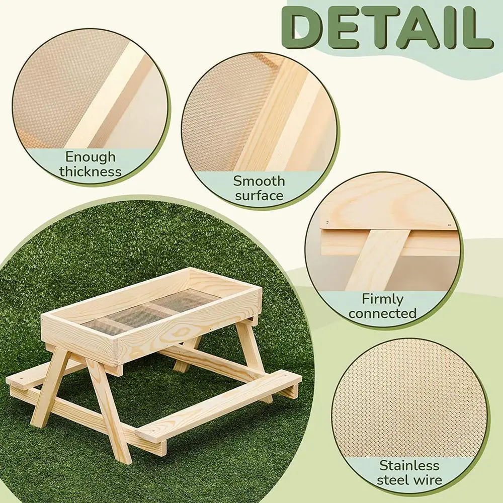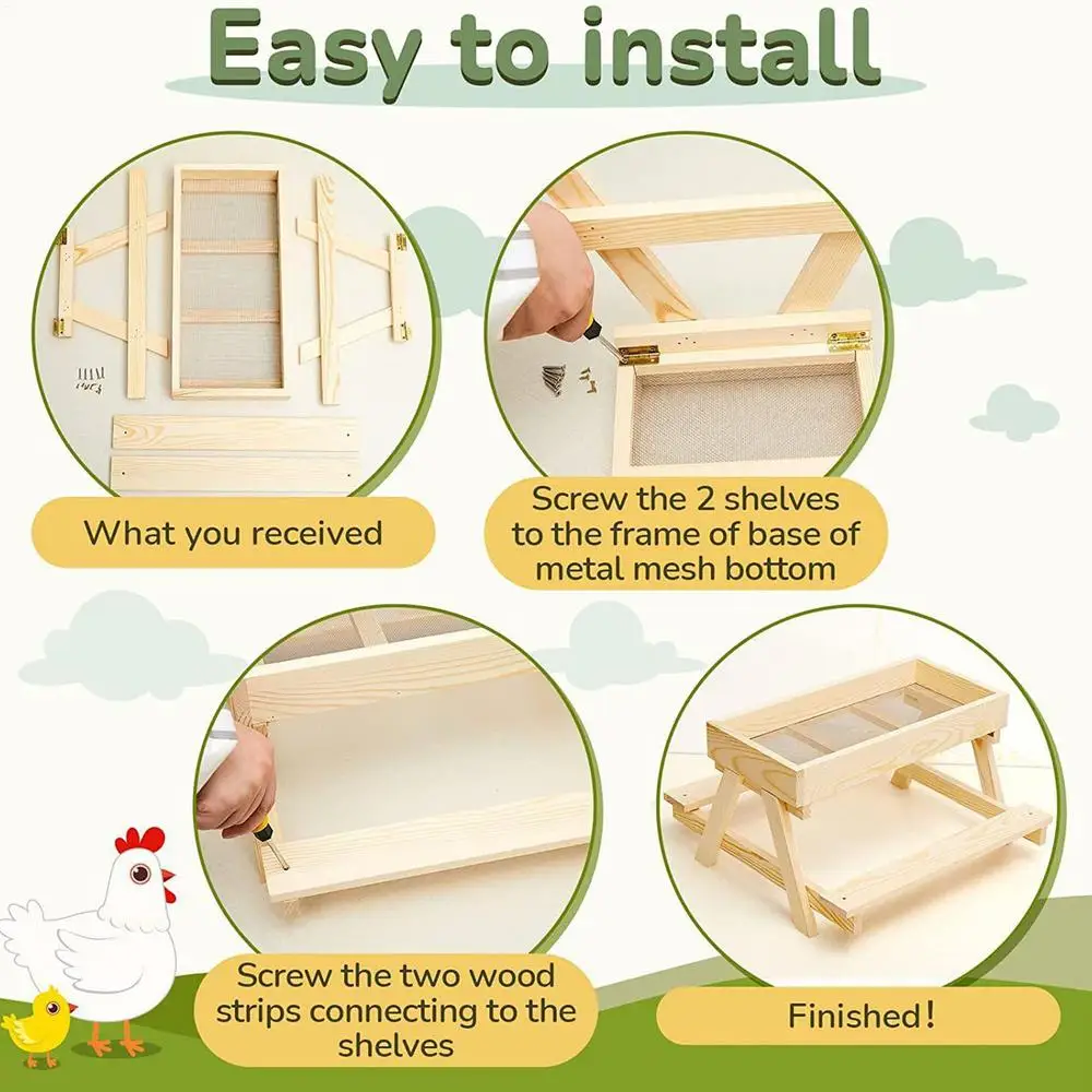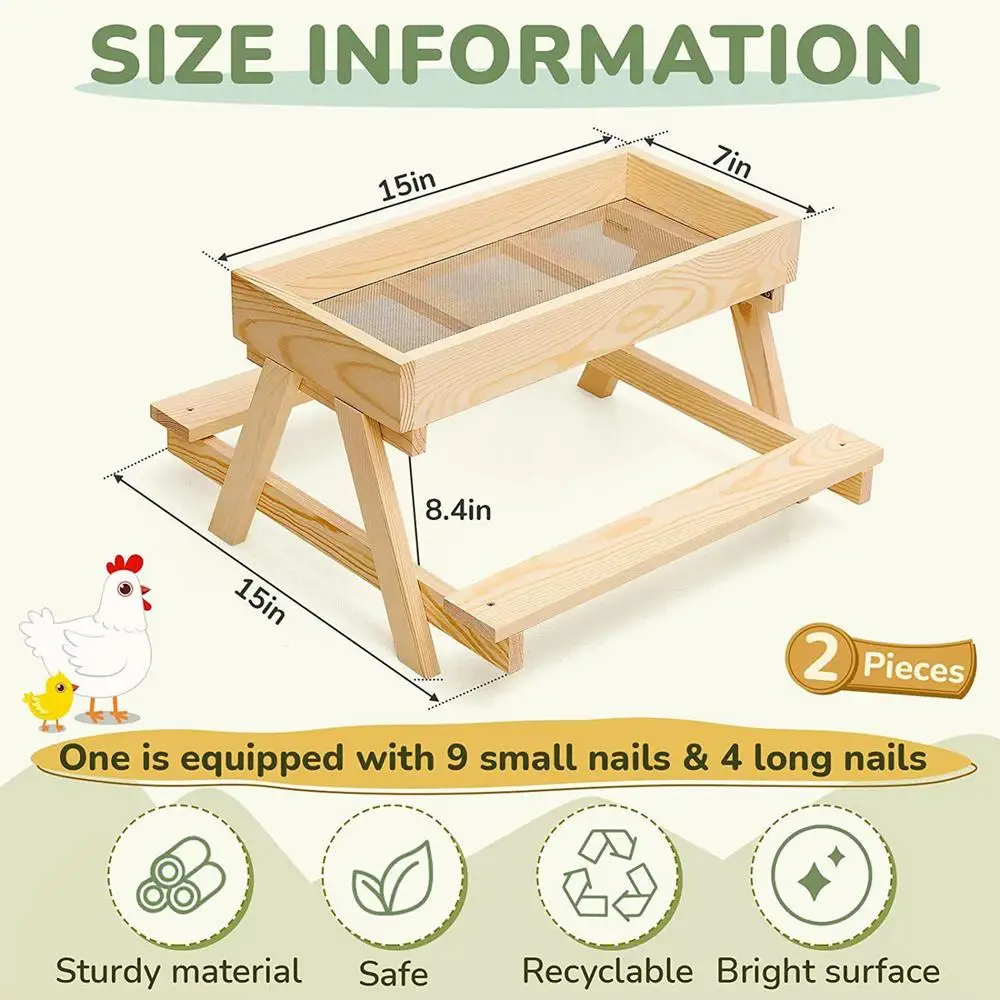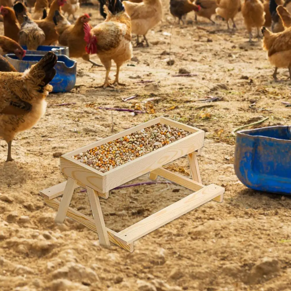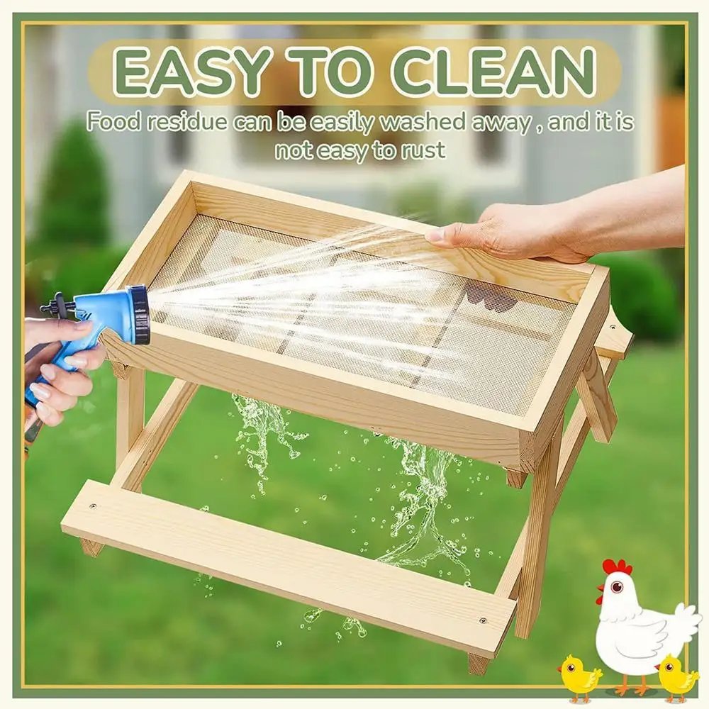Elaborado con materiales de madera, este comedero proporciona un rendimiento confiable para ambientes al aire libre con su función de fondo de malla que preserva la frescura y la sequedad del alimento.Diseñado para granjas o gallineros en el patio trasero, es una solución eficiente para suministrar alimentos para gallinas, pavoces, patos y otras aves.Su práctico diseño favorece los comportamientos nutricionales naturales de los flocks silvestres manteniendo la limpieza y accesibilidad en el suelo o cerca de áreas de alimentación.