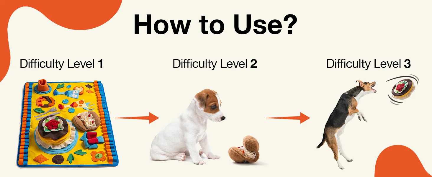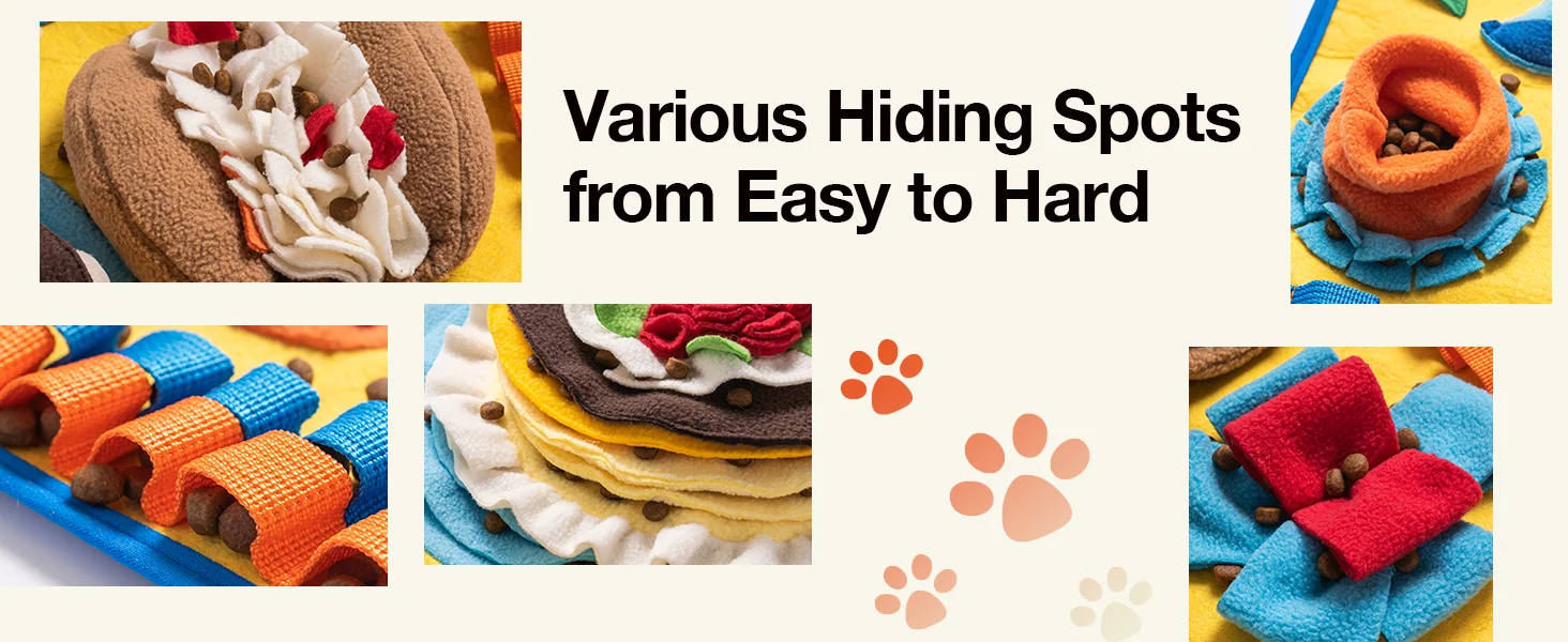【Diseño temático del té de la tartama】 La alfombrilla completa para perros es un área de juego: puede esconder golosinas en pasteles, panes, tazas, etc. Puede aumentar la diversión de buscar comida, liberar el estrés y quemar el exceso de energía de su mascota.