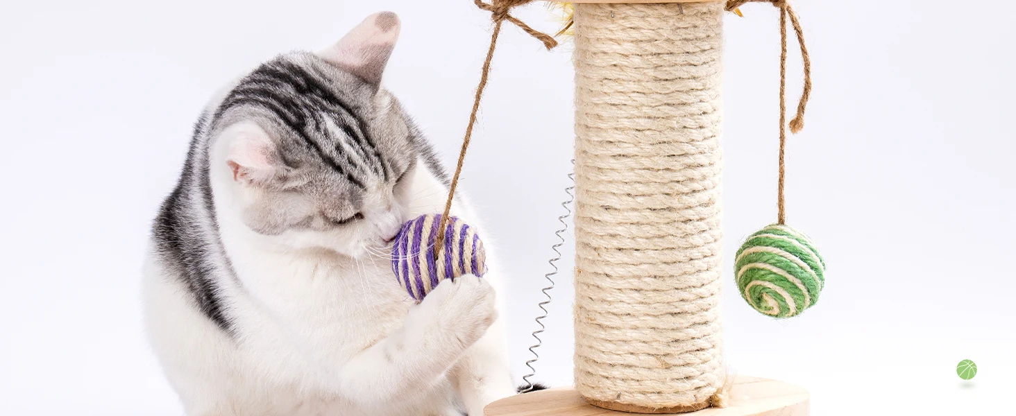 Hecho de sisal natural, el bastón para rascar satisface las propiedades naturales de su gato para trepar y rascar, ayudando a mantener sus garras sanas y afiladas.Una almohadilla antideslizante en la base evita cualquier movimiento, asegurando que no raye los pisos ni se deslice durante el juego.