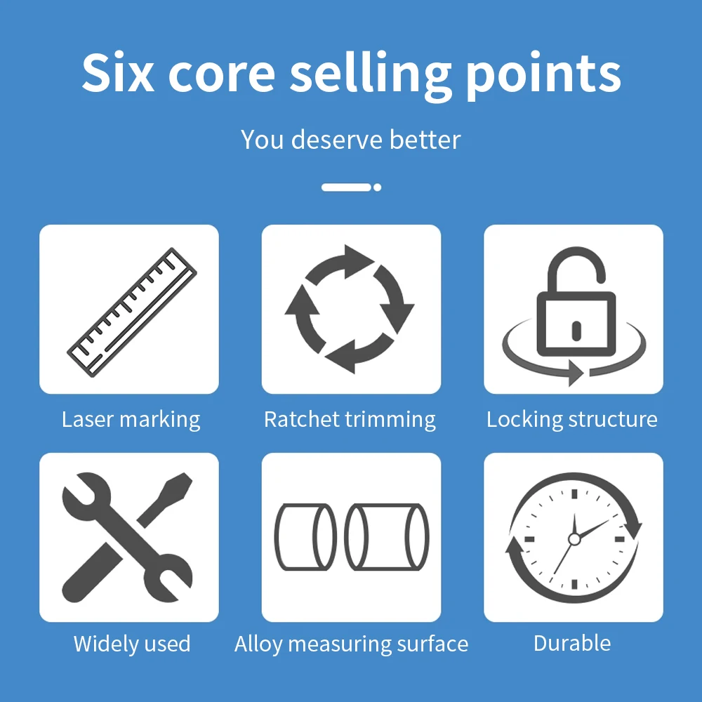 3. Las caras de medición están fabricadas con acero de carburo de tungsteno para una máxima durabilidad.