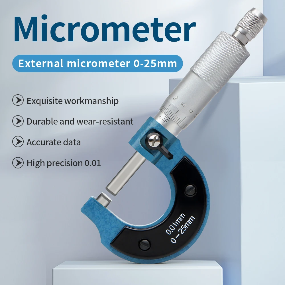 Micrómetro exterior 0-25mm 0,01mm calibre de precisión Vernier calibre métrico micrómetro herramienta de medición precisa