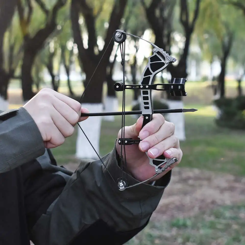 Mini arco compuesto de Metal de alta calidad, equipo de caza portátil, juguete al aire libre, 24cm, pequeño arco y flecha para caza al aire libre