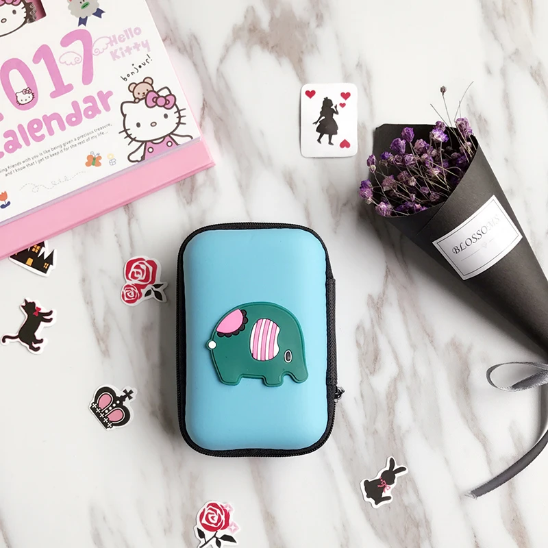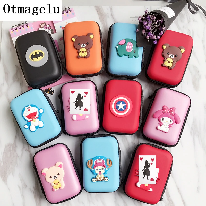 Mini funda de almacenamiento de auriculares de dibujos animados para llave, caja de soporte duro para monedas, organizador de almohadillas para tarjetas de memoria