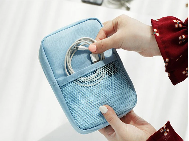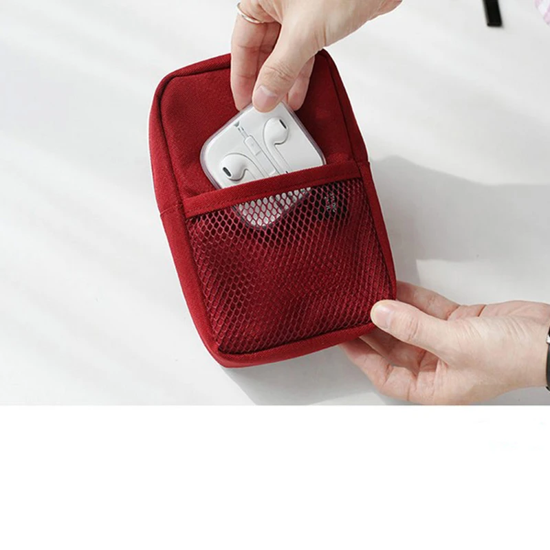 Mini bolsa de almacenamiento cuadrada con cerradura con cremallera portátil, caja de auriculares para estuche de auriculares, tarjetas SD, cargador de banco de energía USB, organizador de viaje