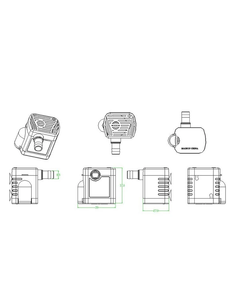 Rotor magnético permanente sin escobillas.La bobina de alambre esmaltado y la placa de circuito están selladas con resina epoxi.La bobina adopta alambre esmaltado de cobre puro, menor aumento de temperatura y mayor vida útil.Bajo consumo y bajo nivel de ruido (menos de 35 dB).4 ventosas de goma en la parte inferior, pueden adsorber en la superficie lisa y reducir el ruido y la vibración.Amplio rango de resistencia a temperaturas desde 0°C a 100°C.Diseño anfibio, instalación sumergible y totalmente impermeable.Grado de impermeabilidad IP68, totalmente sumergible en el agua.otro tipo de detalle como se muestra en la imagen.Paquete incluido: