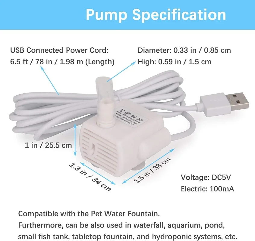 La bomba de bebedero para mascotas es un reemplazo perfecto para su antigua bomba en el bebedero para mascotas.
