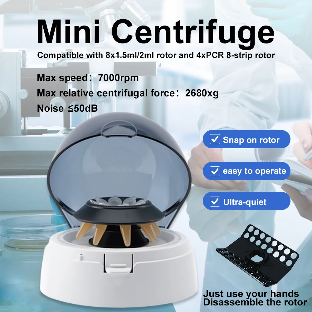 Mini máquina de centrífuga de 7000rpm, enchufe EU, EE. UU., Reino Unido, microcentrífuga de Plasma, sangre, PCR, centrífuga para laboratorio, estudio químico