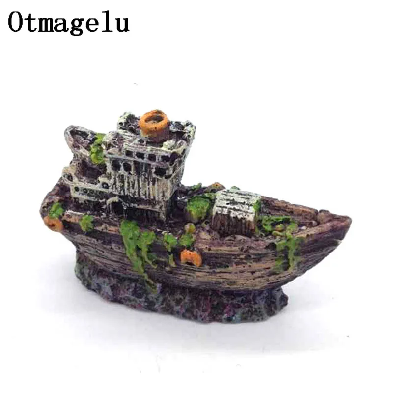 Mini barco de resina para acuario, decoración para pecera, barco del tesoro pirata, accesorios de adorno para barcos pequeños, estatua para esconderse de peces