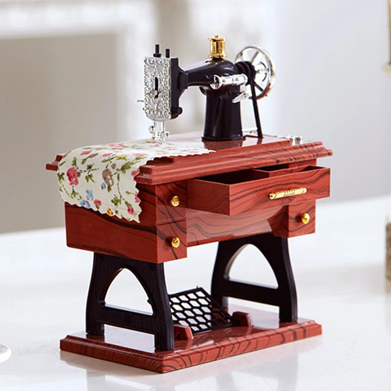 Mini máquina de coser Vintage, caja de música, Base, máquina de coser, mesa, adorno, mecanismo de relojería, caja de música para decoración del hogar