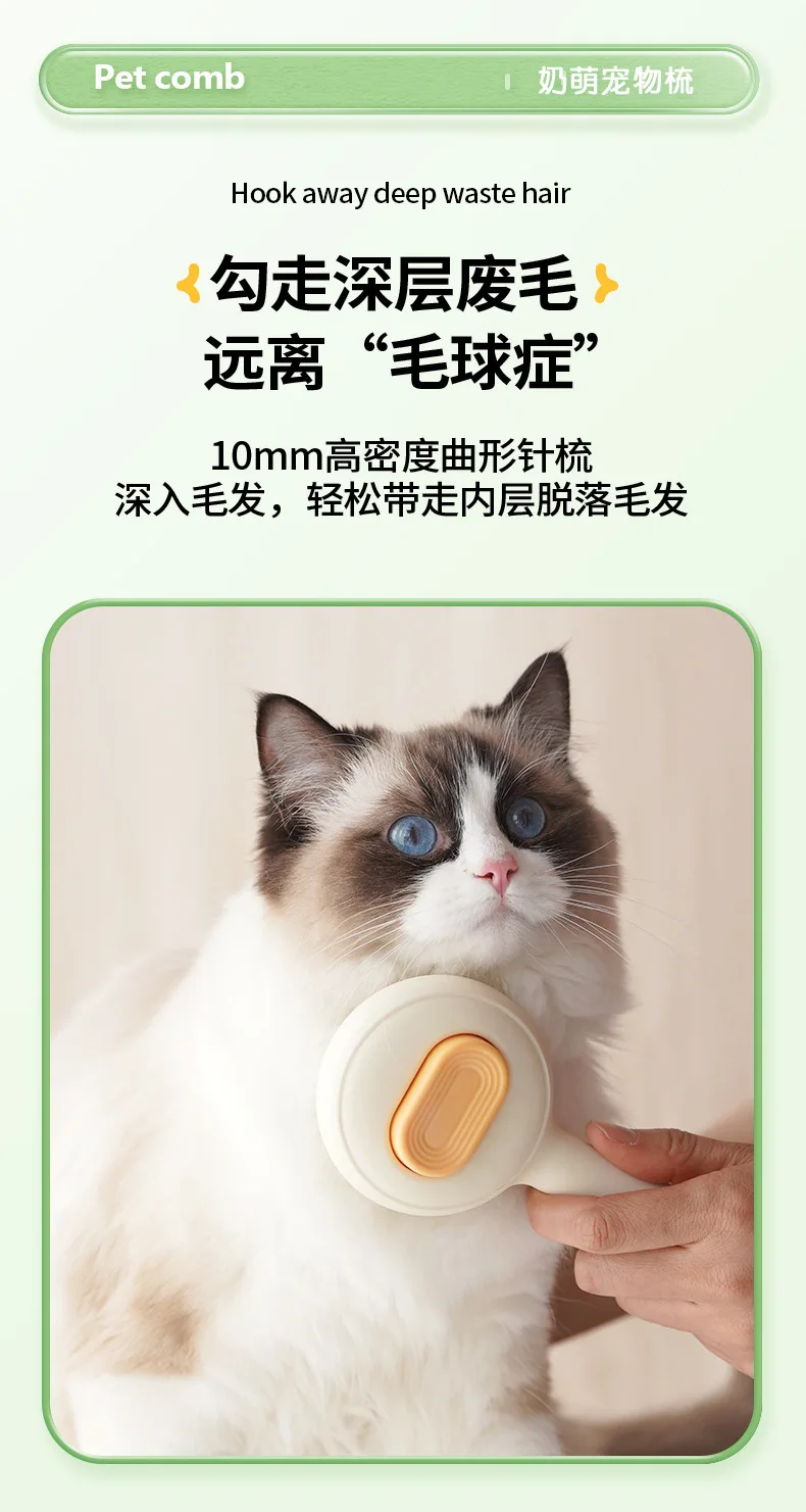 MINI peine para mascotas, aguja de acero inoxidable para gatos, peine con aguja de presión, cepillo para quitar el pelo de perros, cepillo con función de autolimpieza con un solo clic