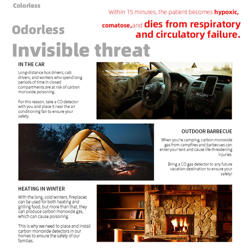 【Ahorro de energía inteligente y diseño humanizado】: la pantalla tiene una función de ajuste automático de brillo que ajusta automáticamente el brillo de la pantalla de acuerdo con la luz ambiental para conservar energía.También puede monitorear los niveles de monóxido de carbono incluso cuando la pantalla está apagada para conservar la vida útil de la batería.Admite entrada de energía continua USB tipo C y tiene una batería de litio incorporada de 800 mAh para garantizar una larga vida útil.