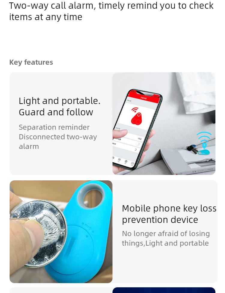Dispositivo Bluetooth anti-pérdida con mascotas, llaves, bolsas, etc., viajar también se puede usar de forma remota con un temporizador automático, muy conveniente.
