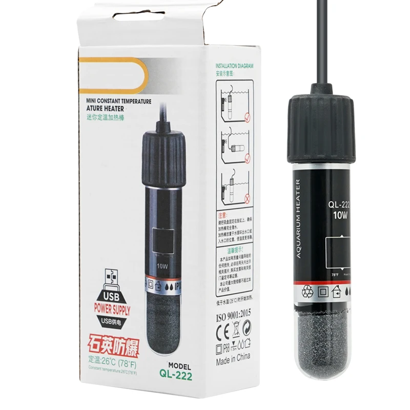 Mini varilla calefactora USB para acuario, 10W, termostato automático sumergible 26C, suministros de calefacción para pecera de temperatura constante
