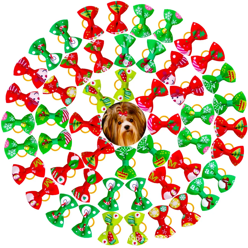 Mixcolor Christmas Bowtie Festival Hair Rope Pet Collar for Dogs And Cats Removable Festive Decorations Accessory