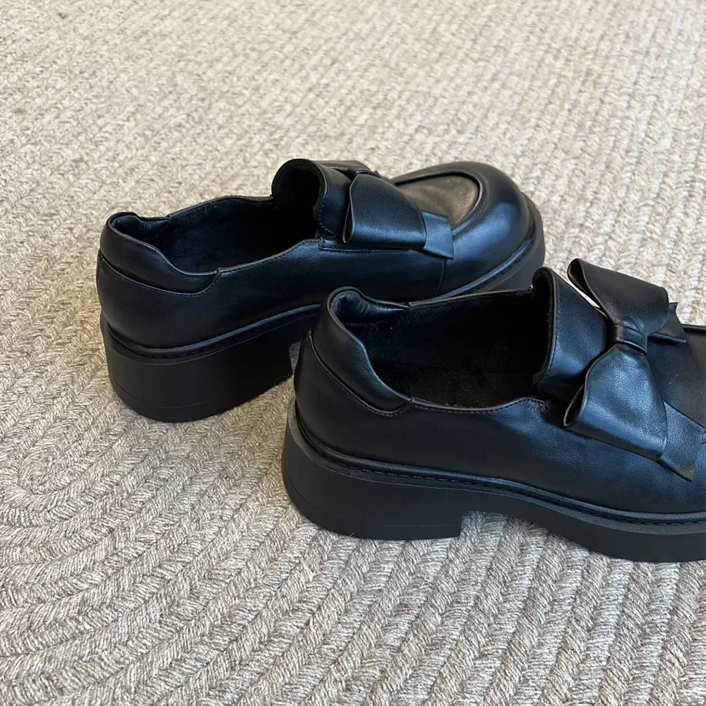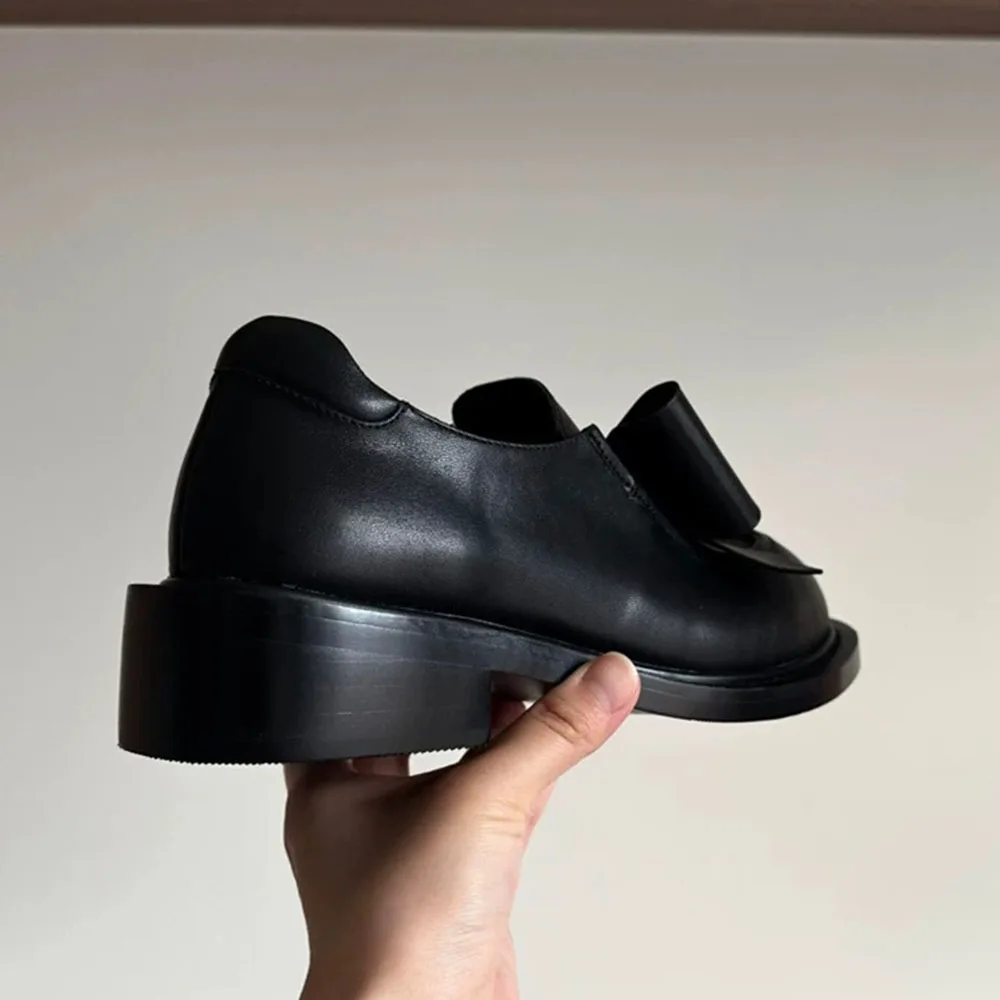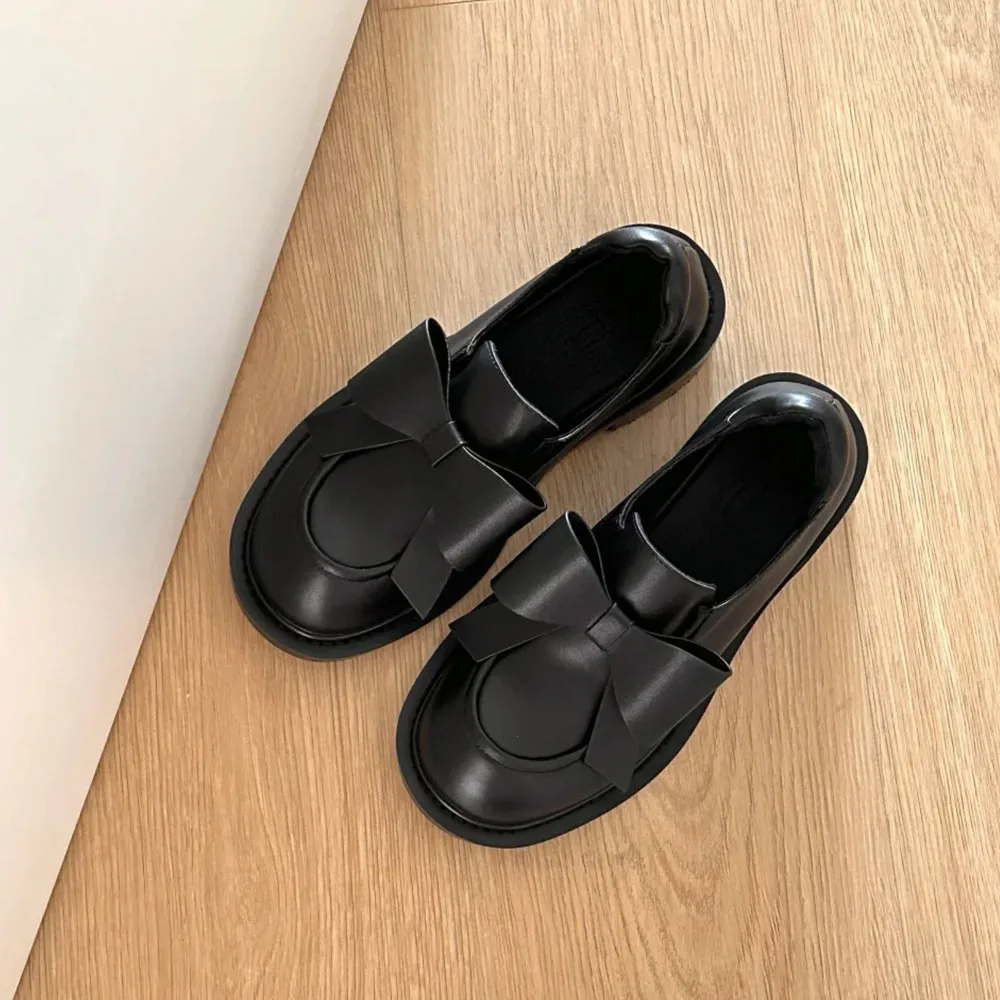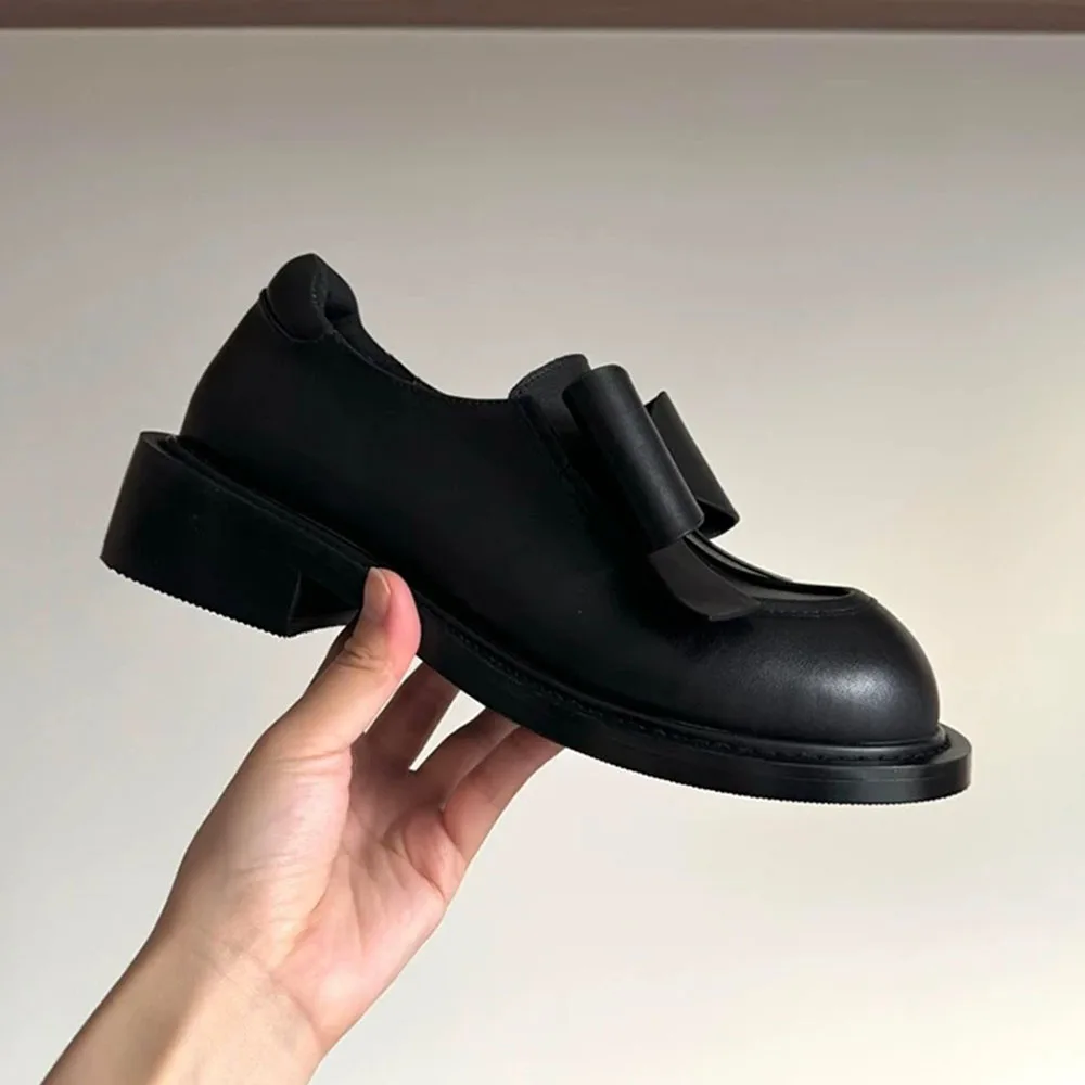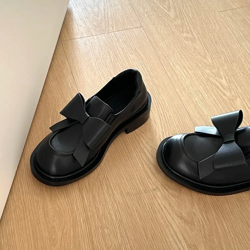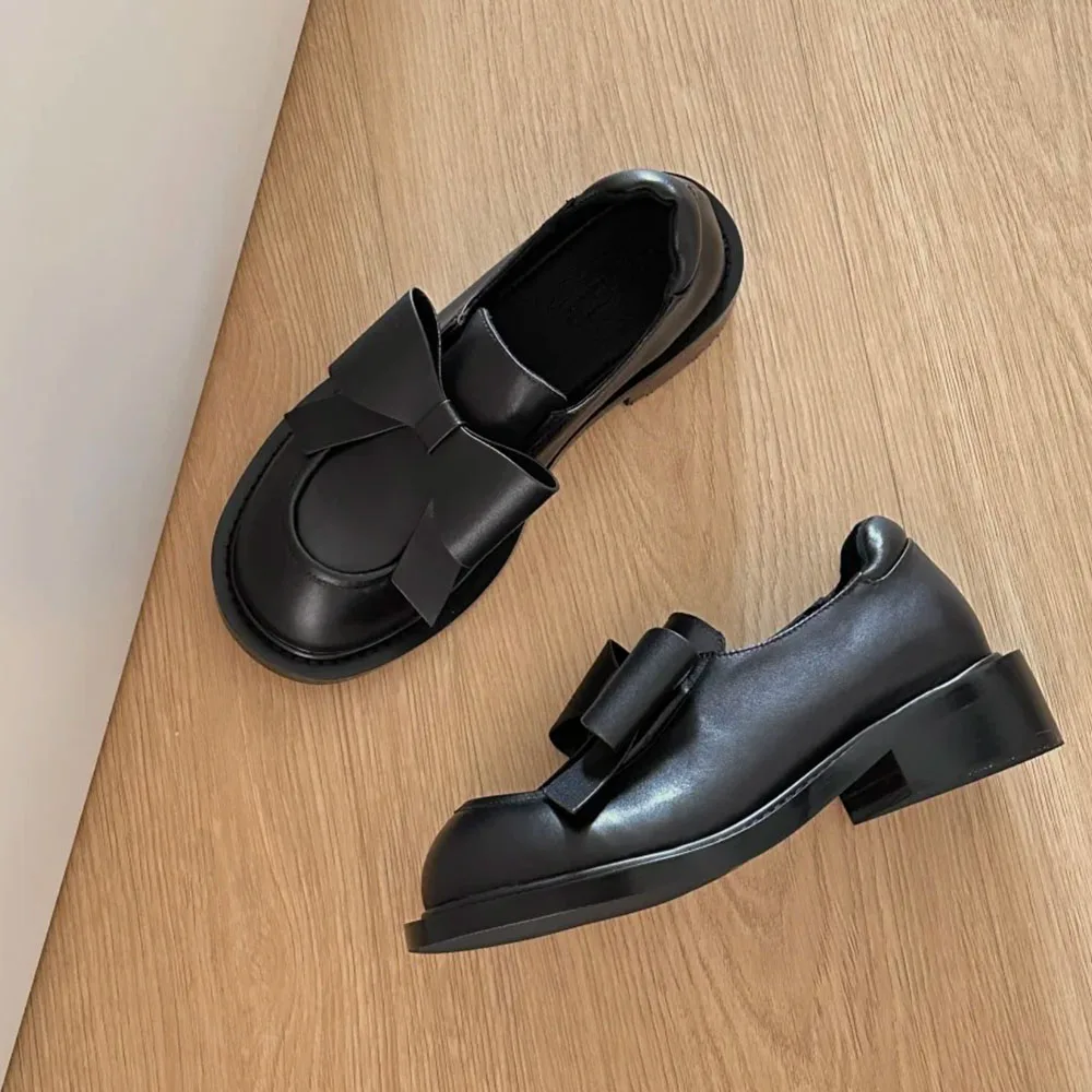 Mocasines góticos negros Vintage para mujer, tacones medios cuadrados Y2k, zapatos de tacón con pajarita, calzado gótico con punta redonda, novedad de 2025