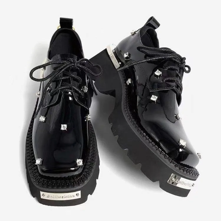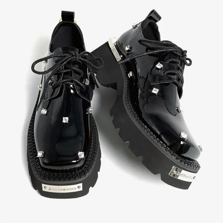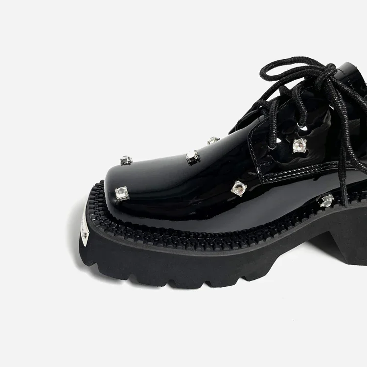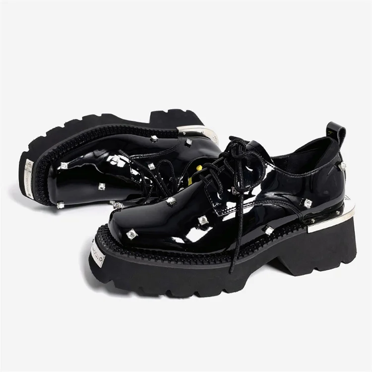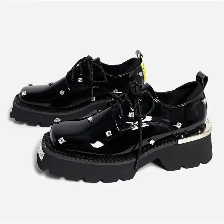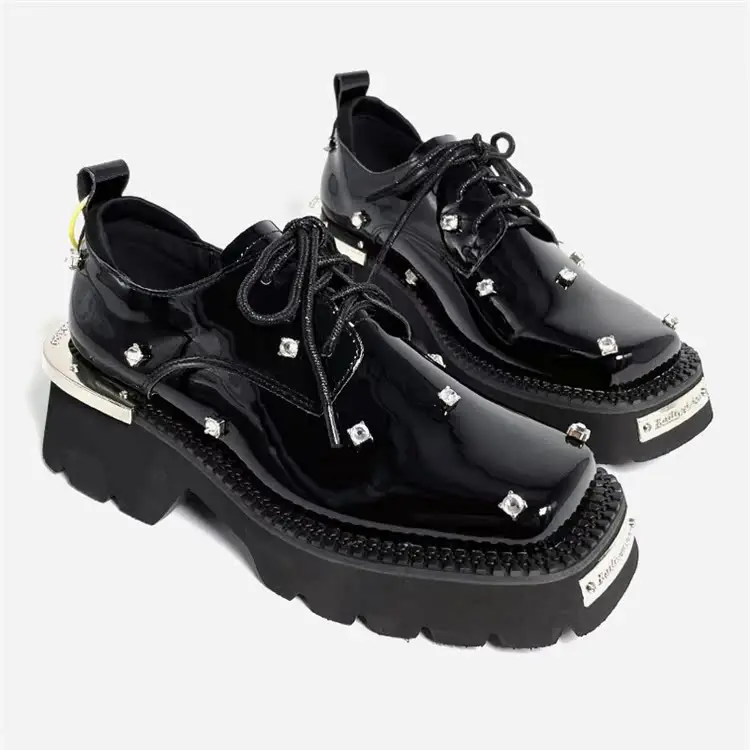 Mocasines de mujer con plataforma de cristal, zapatos Mary Jane gruesos, sandalias deportivas informales 2025, zapatillas de deporte de tendencia de lujo con cordones para mujer