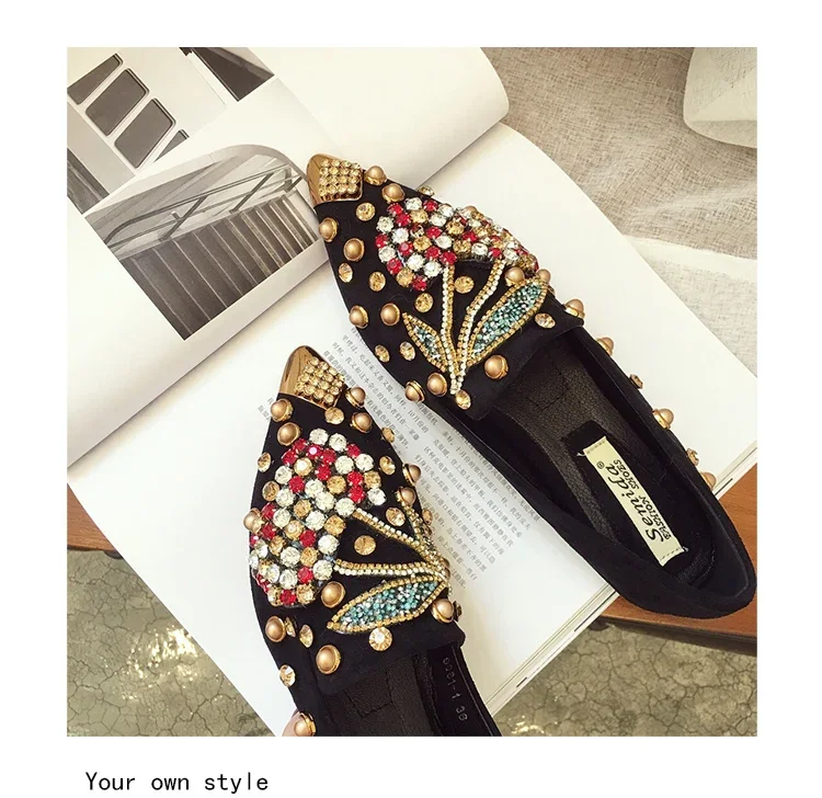Mocasines planos para mujer, mocasines con cristales y diamantes de imitación, zapatos informales para mujer, zapatos planos con punta estrecha, mocasines para primavera y otoño
