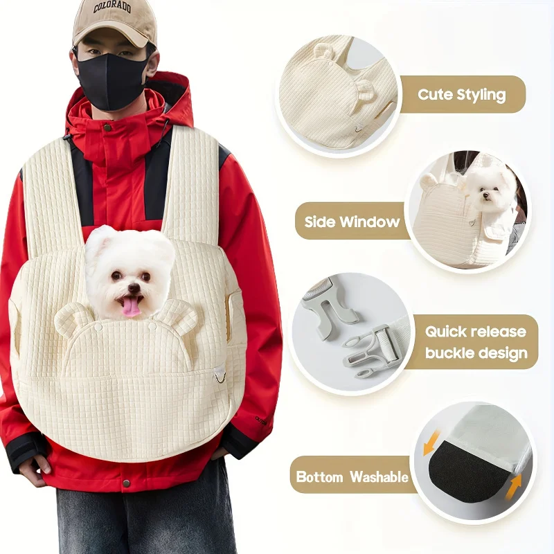 Mochila ajustable de talla única para mascotas, fácil de llevar, duradera, de poliéster beige, para mascotas de 6 kg (per perros, gatos, conejos)