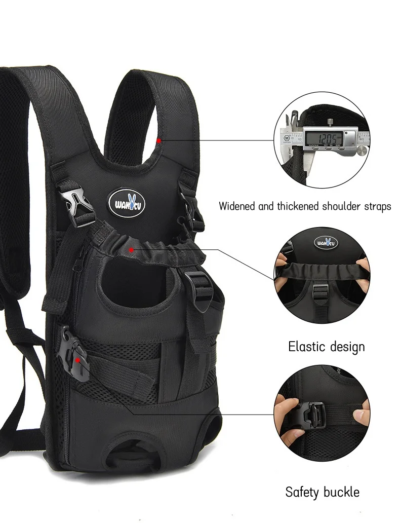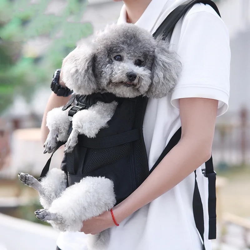 Mochila ajustable para transportar perros y gatos, bolsa de viaje, mochila para transportar mascotas, piernas hacia fuera, fácil de instalar, bolsa de pecho para mascotas al aire libre, color negro