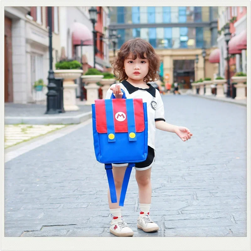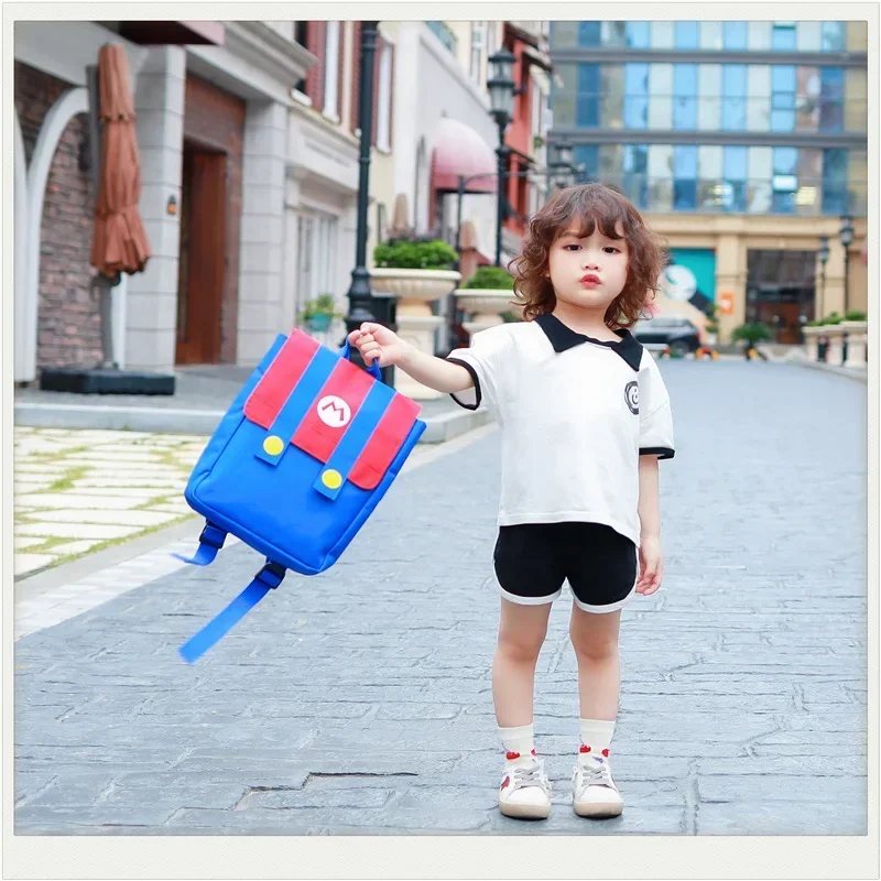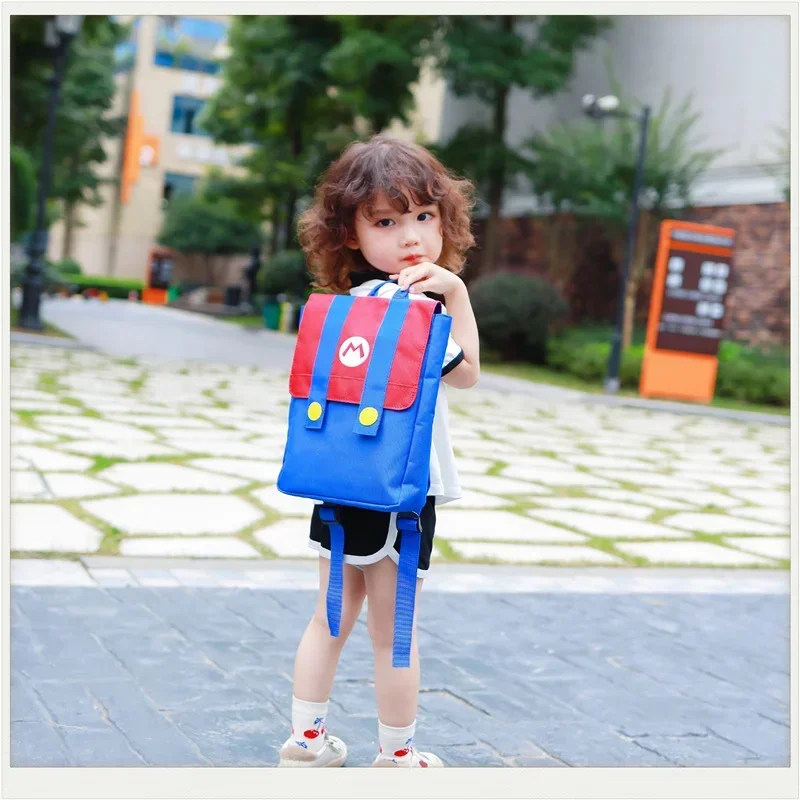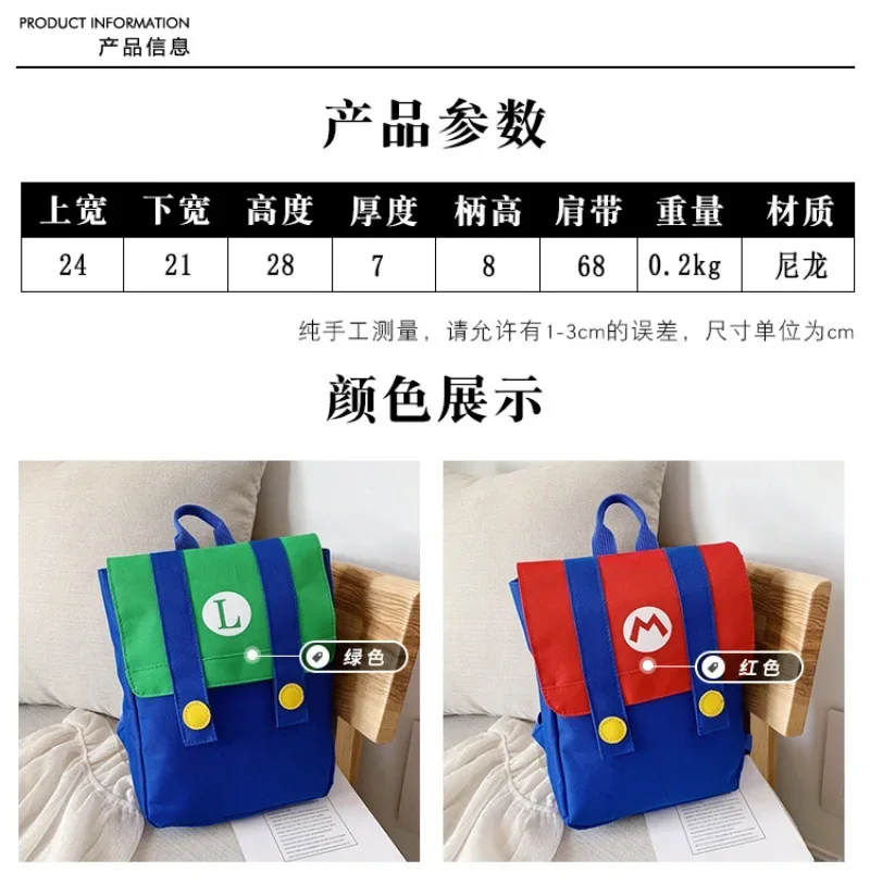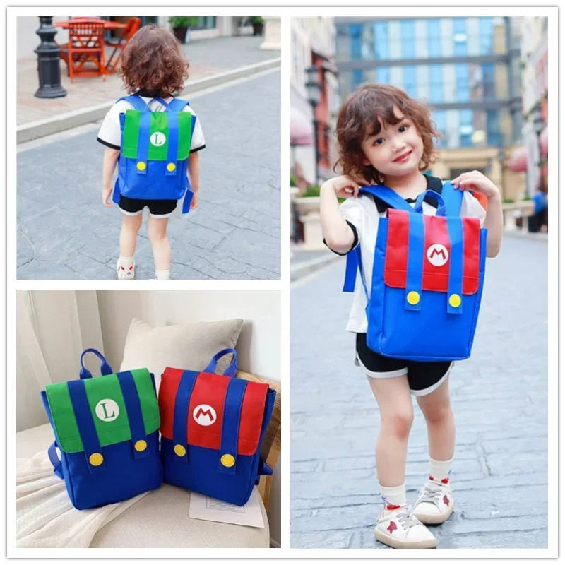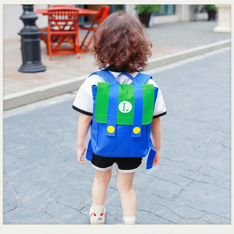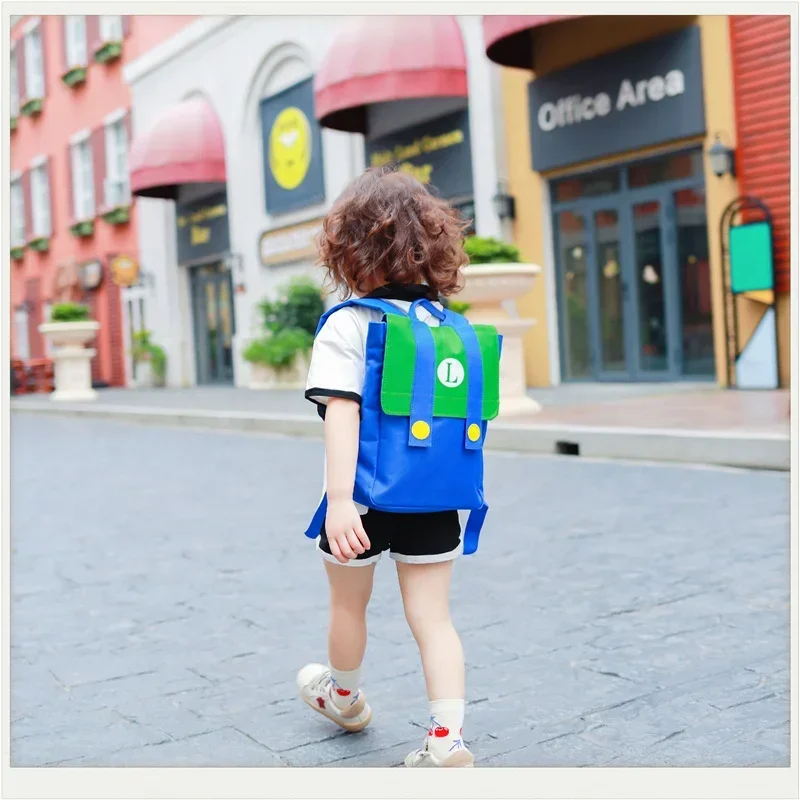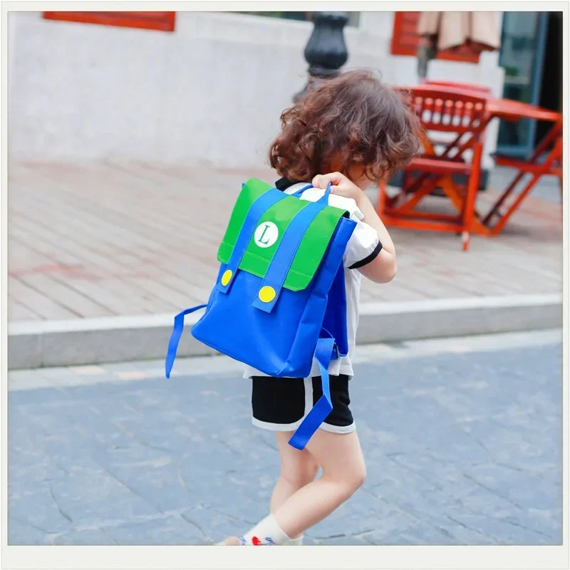 Mochila de Cosplay de Super Marios Bros, nailon de alta capacidad, resistente al agua, juego de Anime, Luigi, jardín de infantes, kawaii, bolsa escolar con letras M, regalos