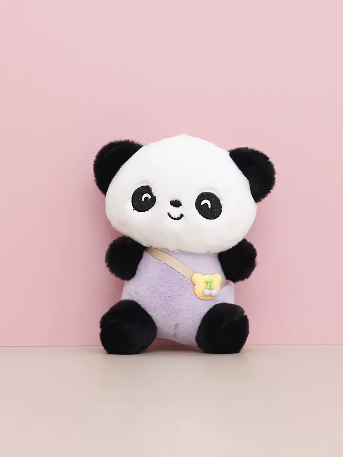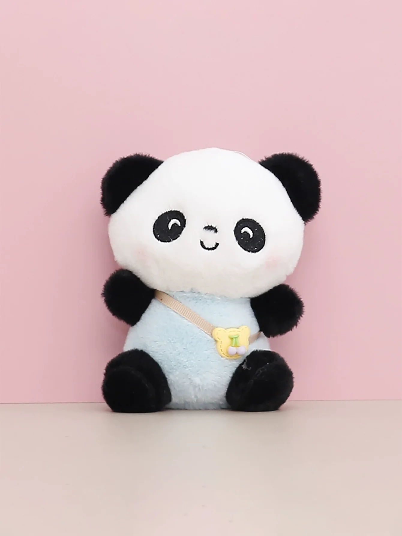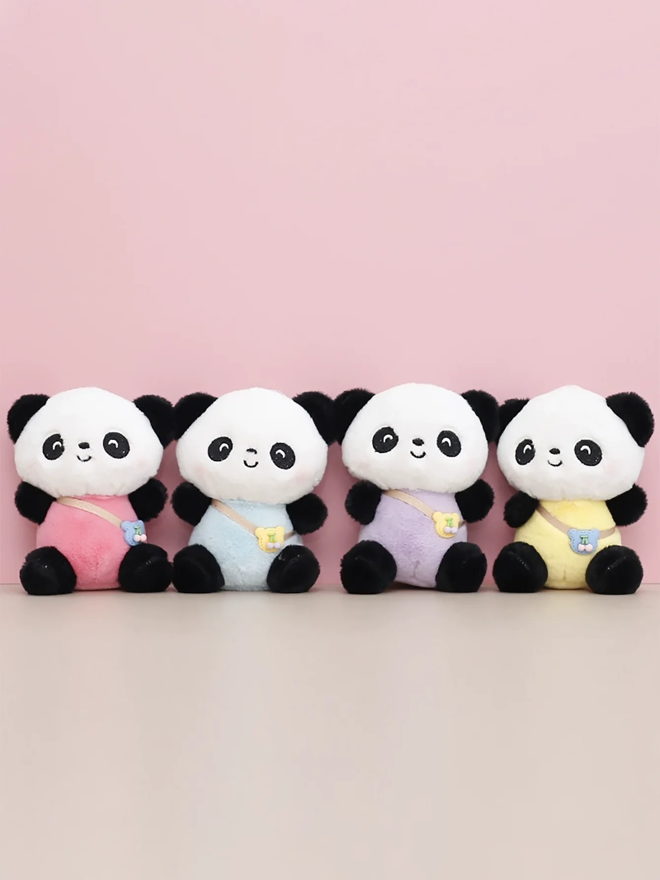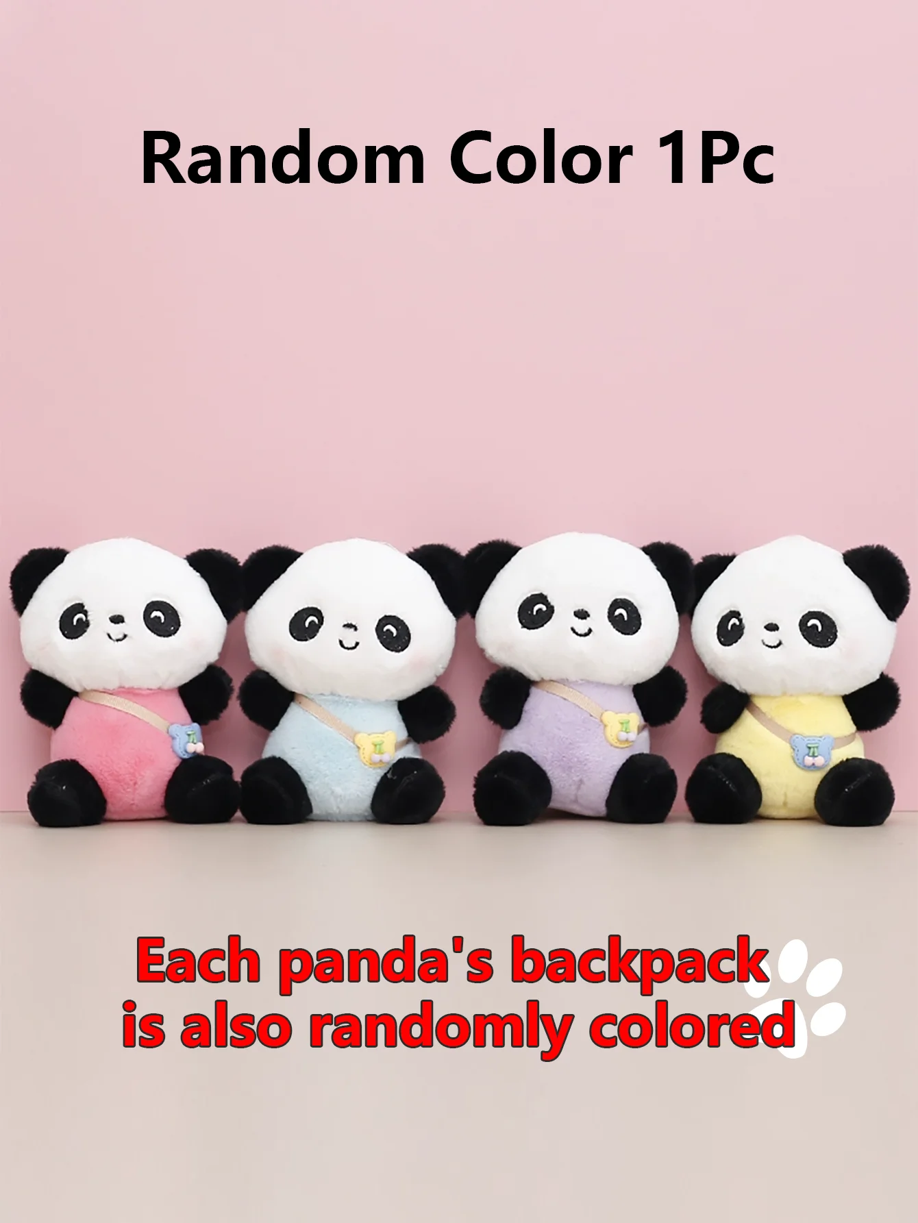 1 random colored plush cute little panda with mini backpack, durable pet plush toy, suitable for small dogs' daily interaction, picking up boring games